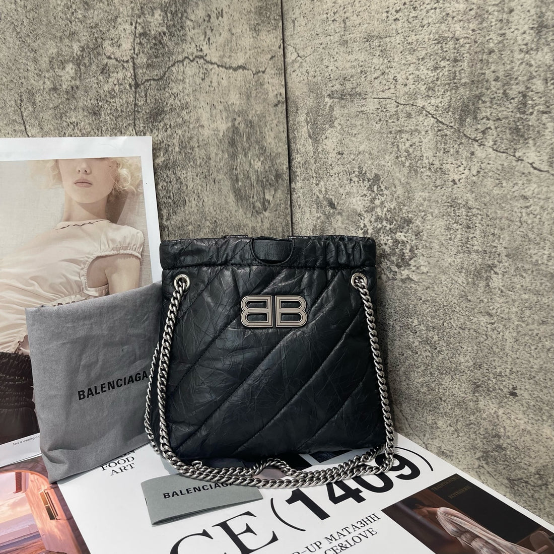 BALENCIAGA Crush Medium Black Textured Leather Gold B Logo Chain Flap Shoulder Bag