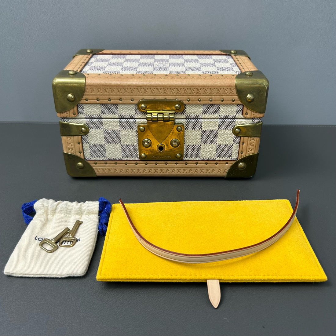 Louis Vuitton/I monogram Damier watch and jewelry case, poplar wood + leather + metal, vintage elegance.