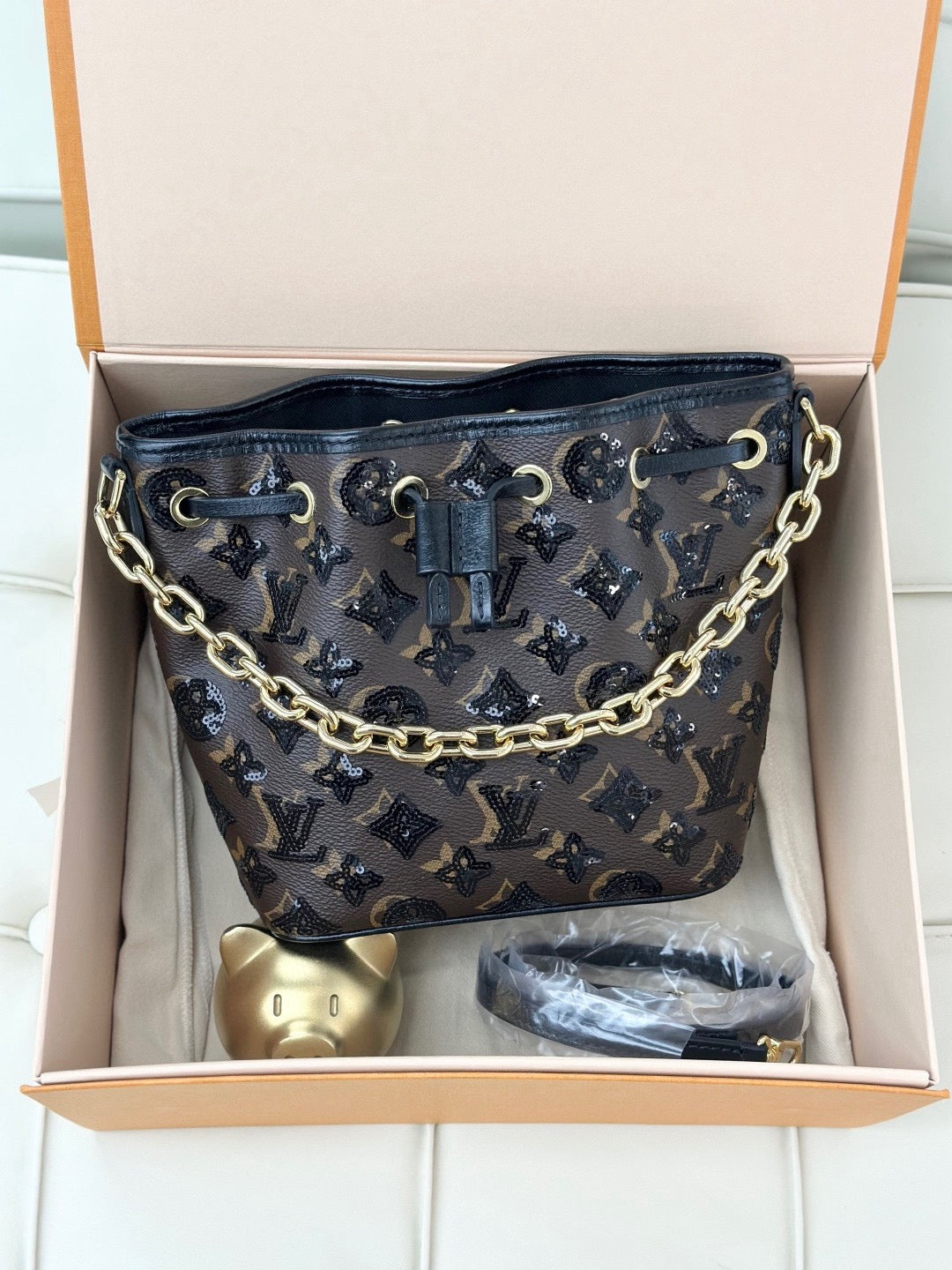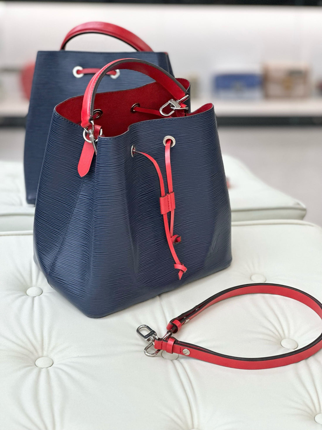 Louis Vuitton NOE Medium Leather Bucket Bag with Silver Hardware