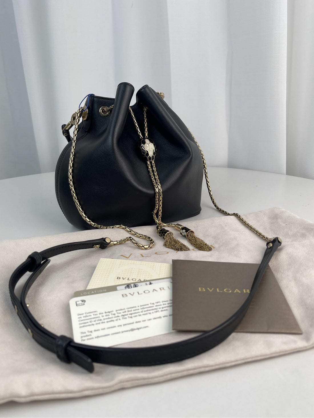Bvlgari Serpenti Forever Bucket Chain Shoulder Bag Leather Black