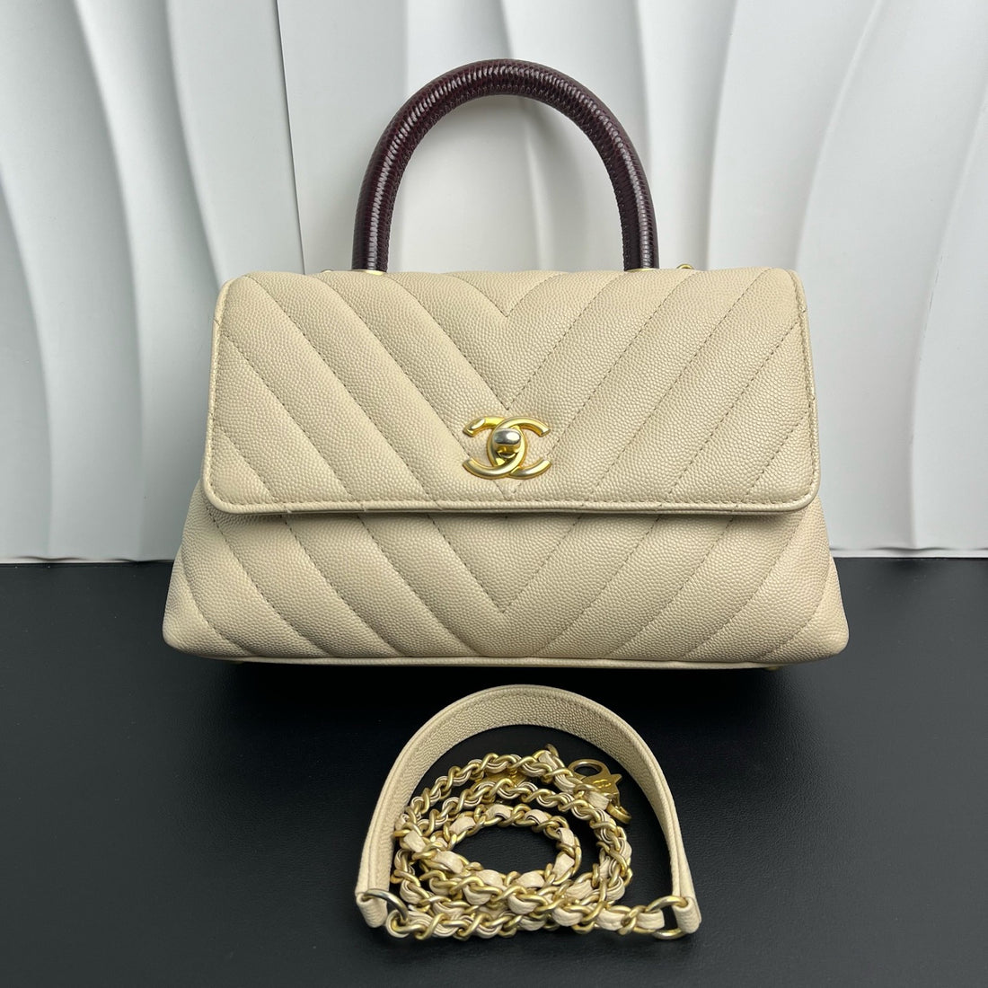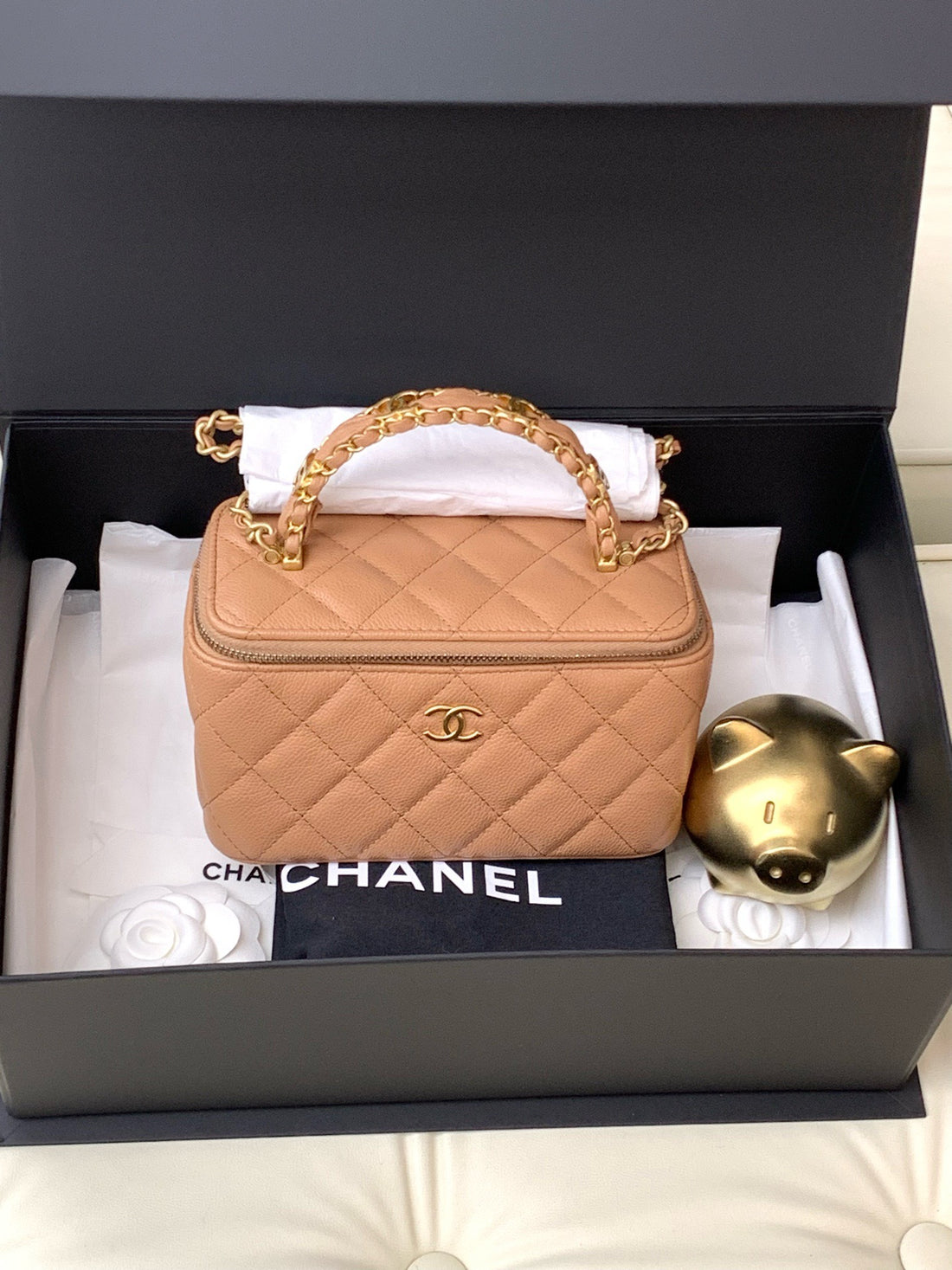 CHANEL Vanity Leather Lambskin Bag with Gold Buckle and Chain Strap - Handbag/Shoulder Bag