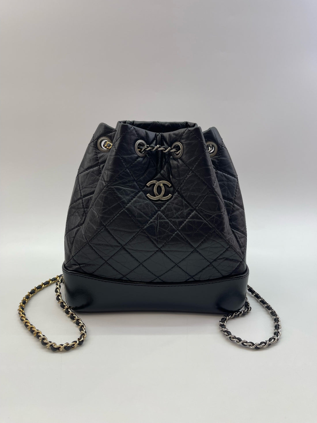 Chanel Gabrielle backpack, black calfskin, RHW hardware.