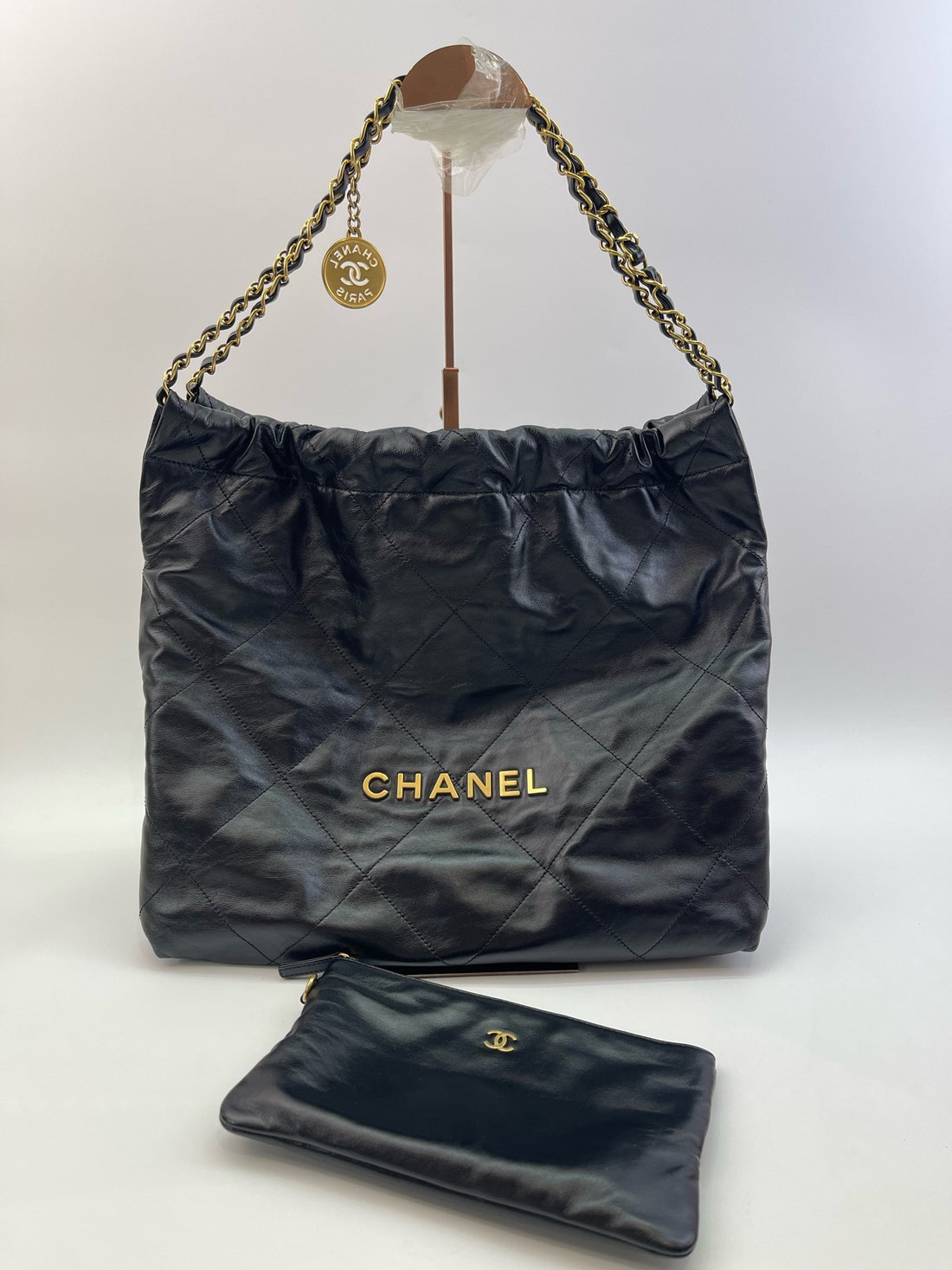 Chanel 22bag Black Gold Calfskin Leather Handbag