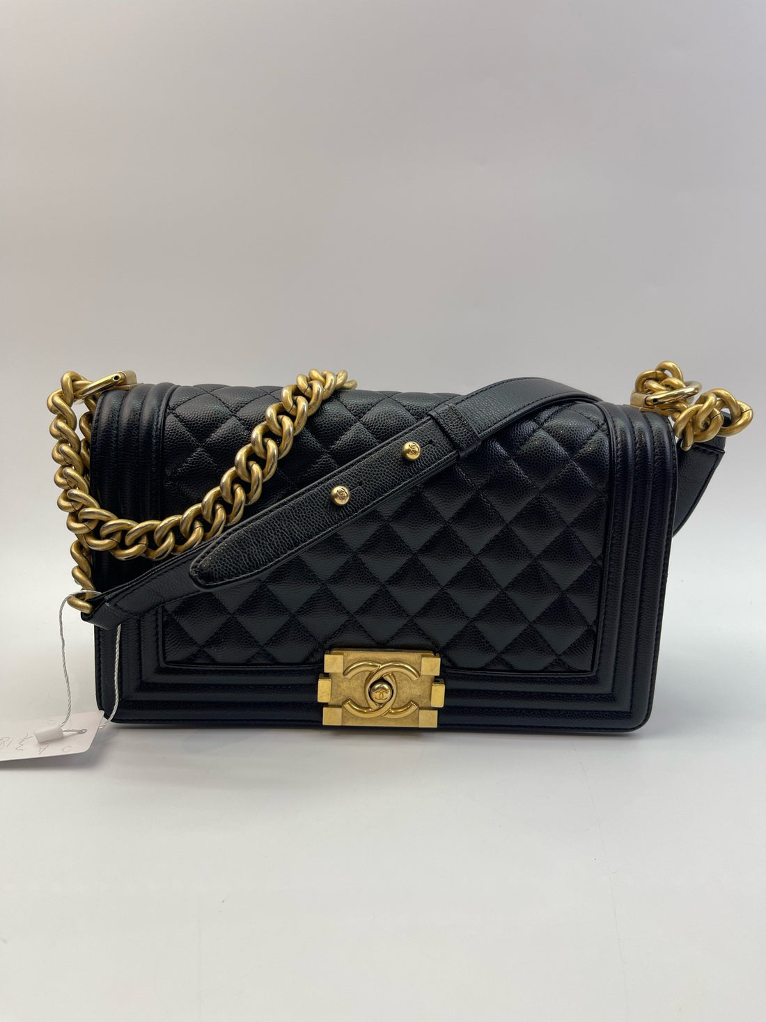 Chanel Caviar Classic Large Flap Shoulder Bag, Black and Gold