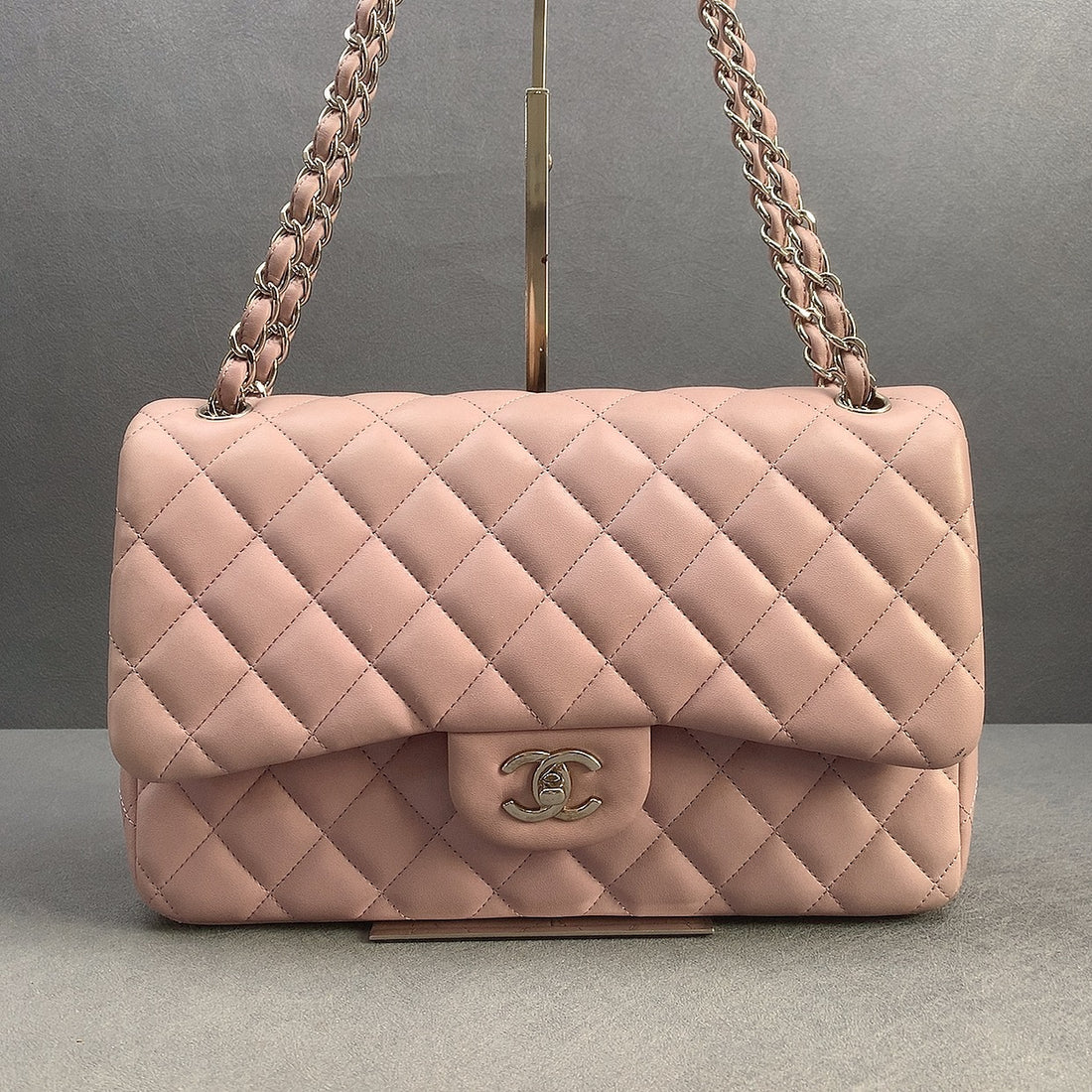 Pre-owned Chanel Jumbo classic flip-top baby pink Rose Claire lambskin