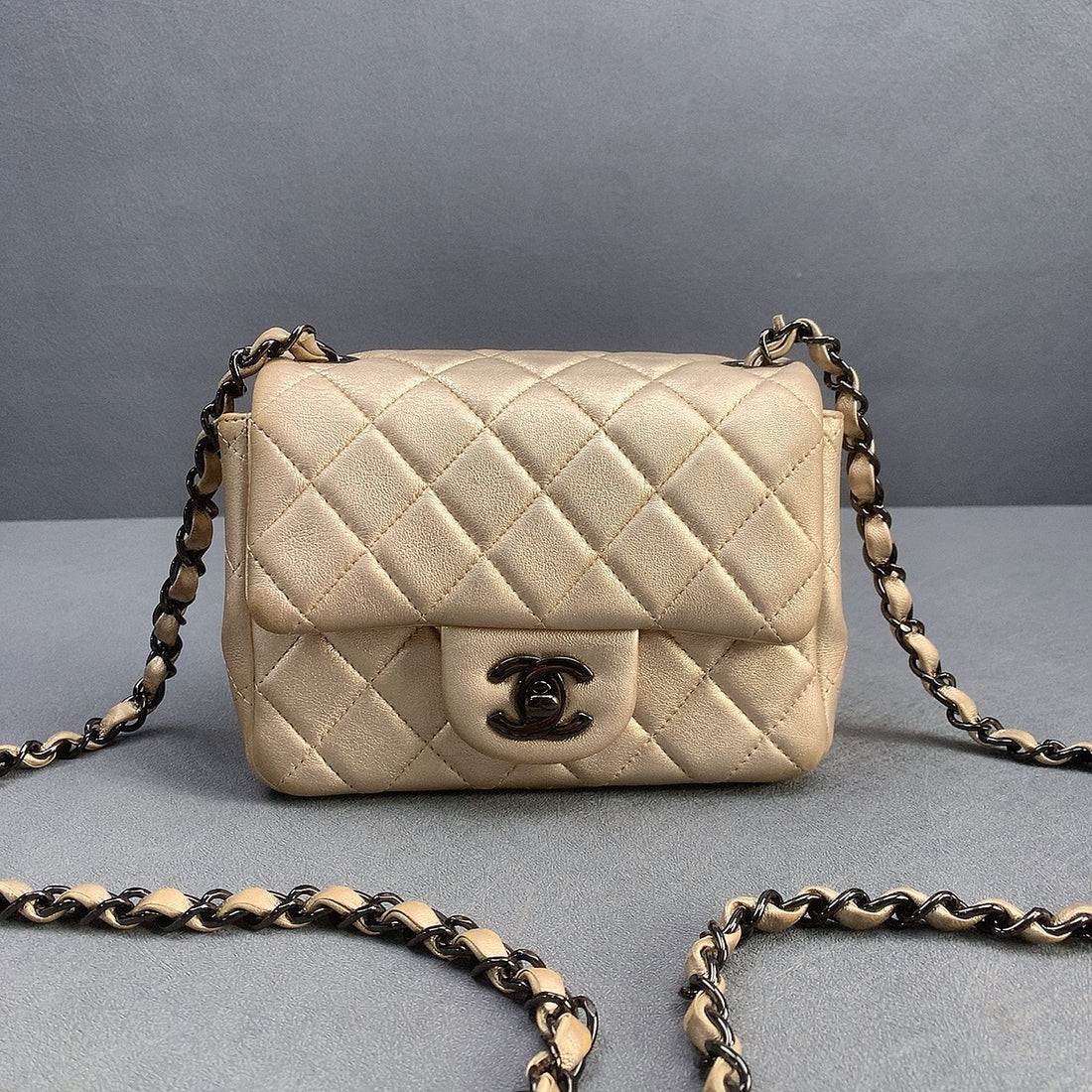 Chanel Beige Shimmering Quilted Suede Mini Square Classic Flap Bag