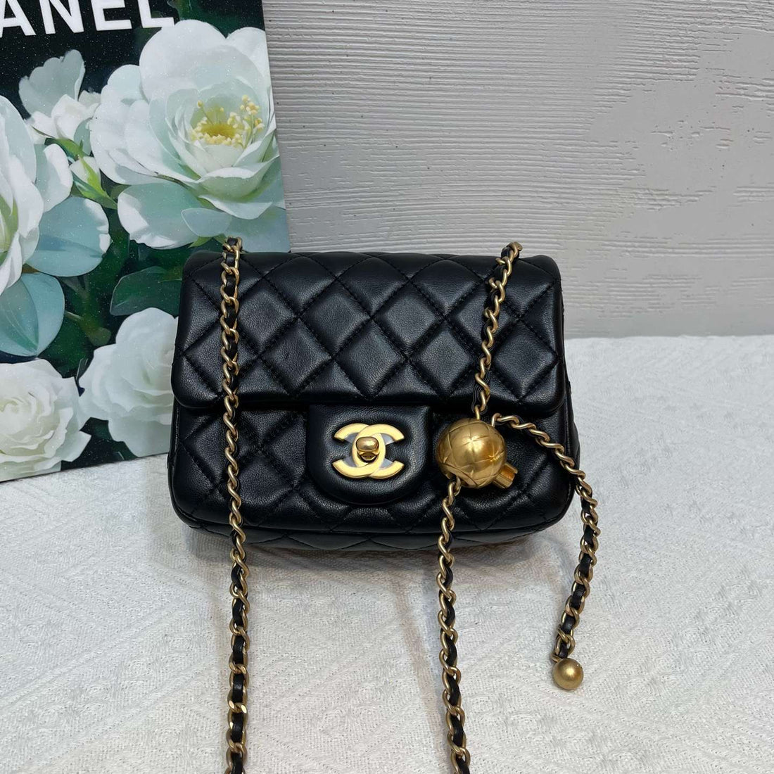 CHANEL Black Lambskin Mini Square Pearl Crush Flap Bag