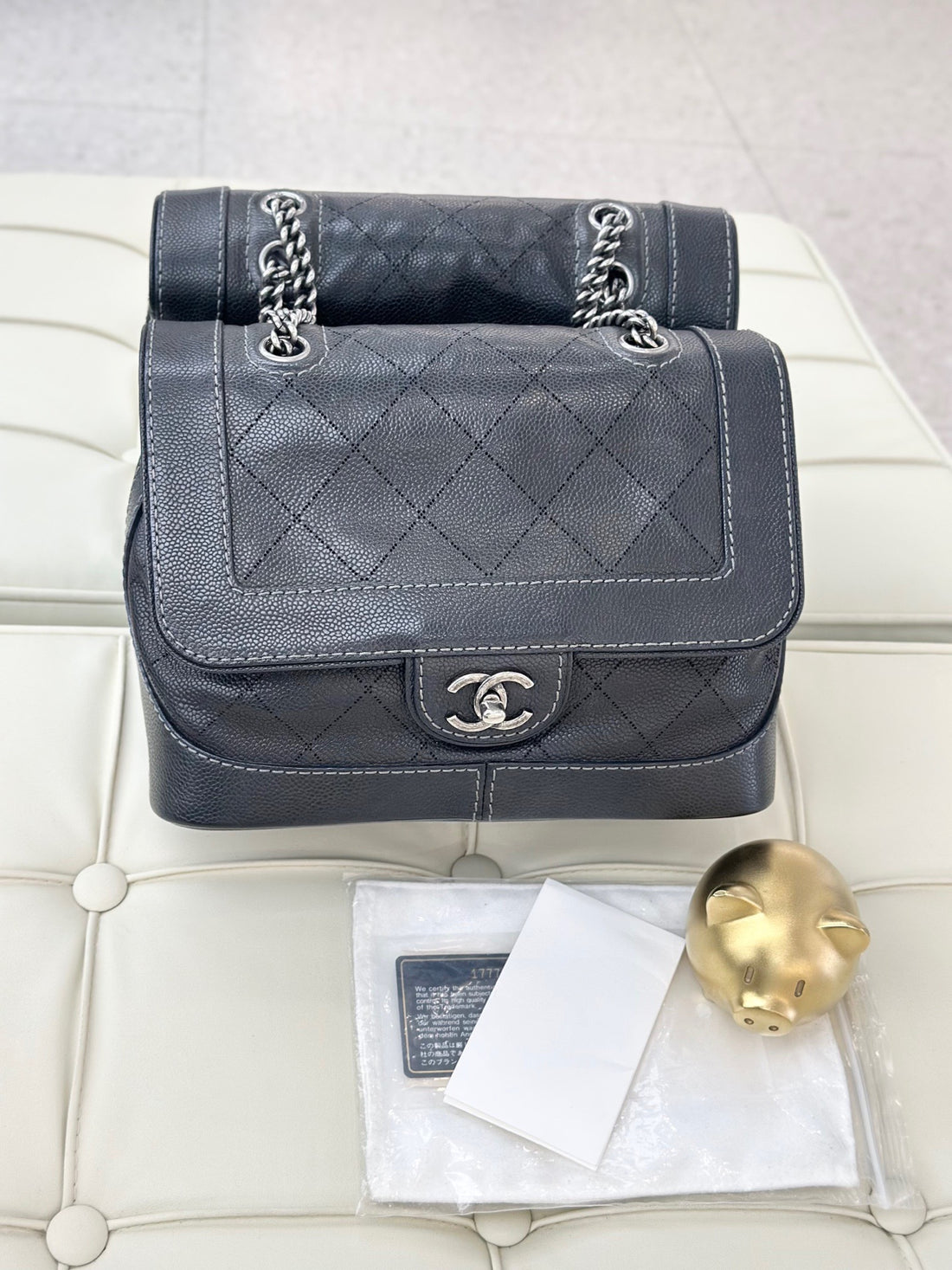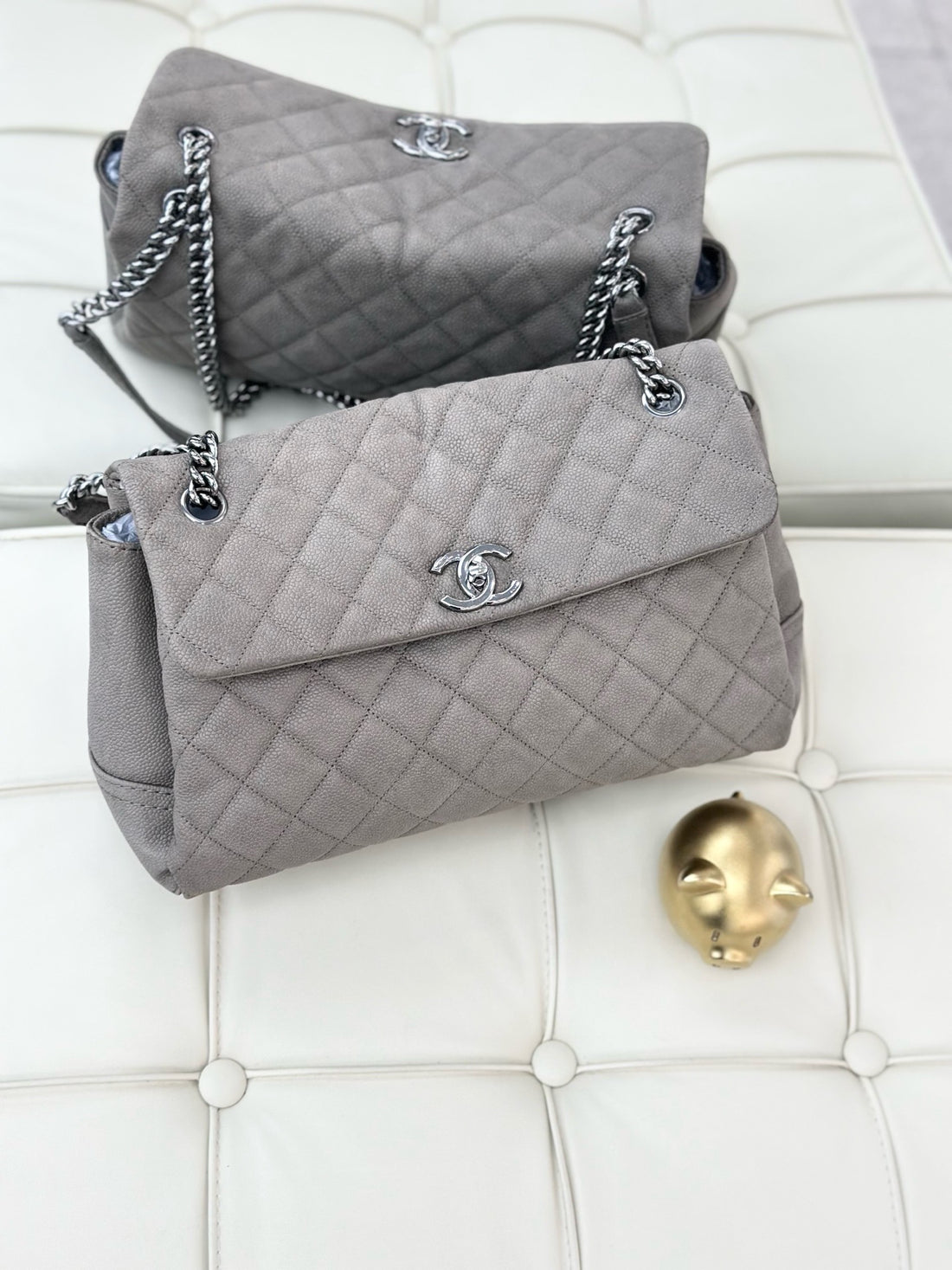 Chanel Matte Fog Grey/Elephant Grey Lychee Grain Leather Airport Bag with Silver Hardware