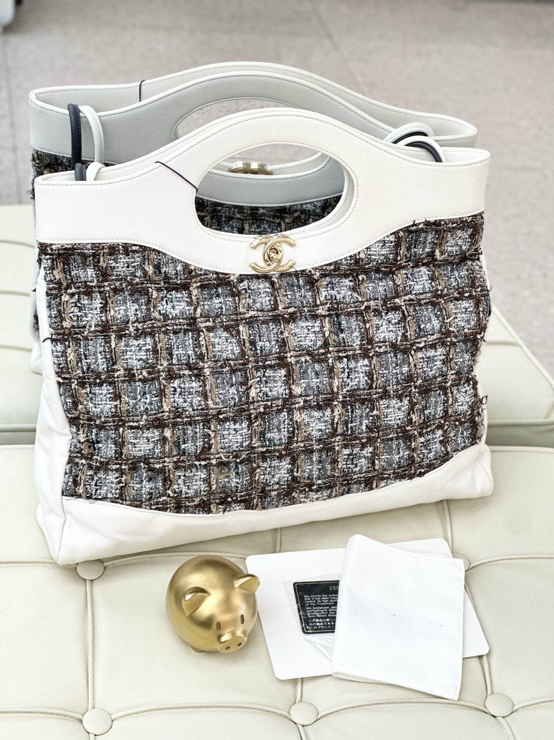 Chanel 25P Beige Lychee Grain Leather LP Chain Bag with Light Gold Buckle