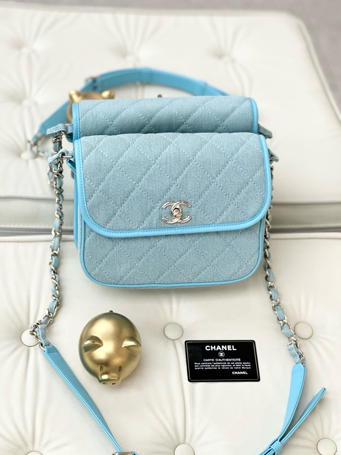Chanel Timeless Classic Flag in Misty Blue with Lychee Textured Leather