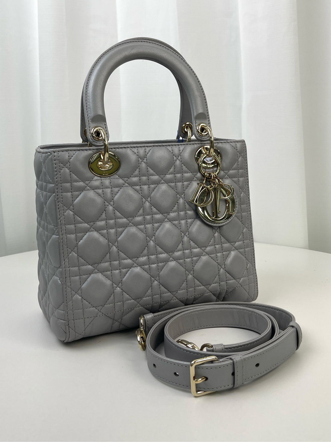 Dior Grey Cannage Leather Medium Lady Dior Handbag