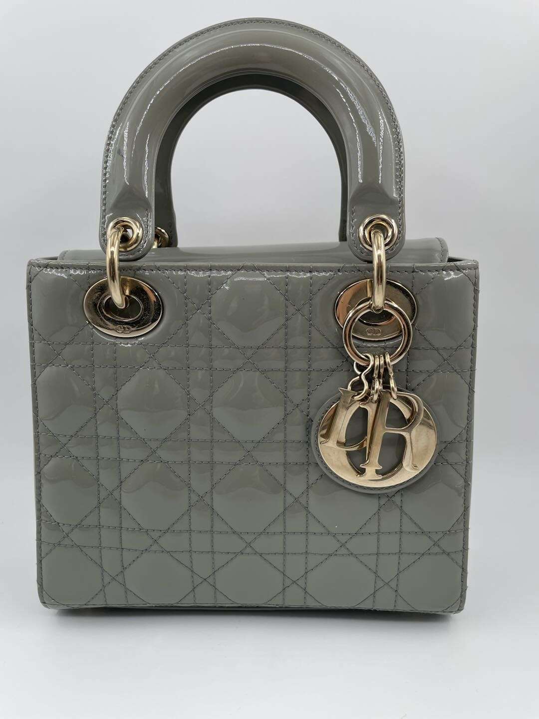 Lady dior patent leather handbag Dior Grey in Patent leather