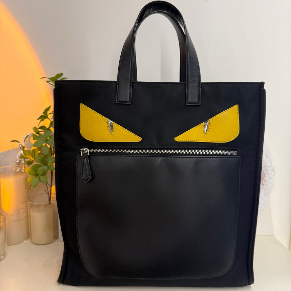 Fendi Monster Bugs Black Yellow Eyes Nylon Tote Bag