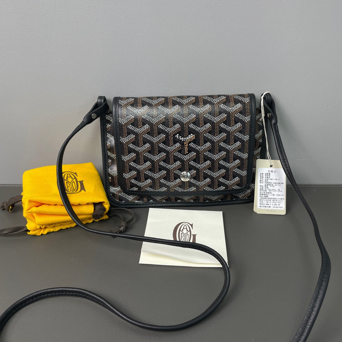 GOYARD Plumet Pocket Wallet Shoulder Bag PVC Leather Black Purse