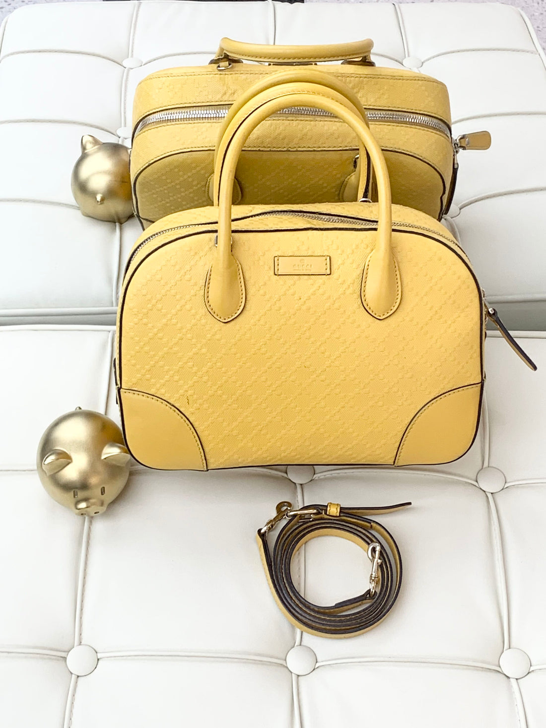 GUCCI Chick Yellow Gold Buckle Diamond Check Leather Shoulder Bag