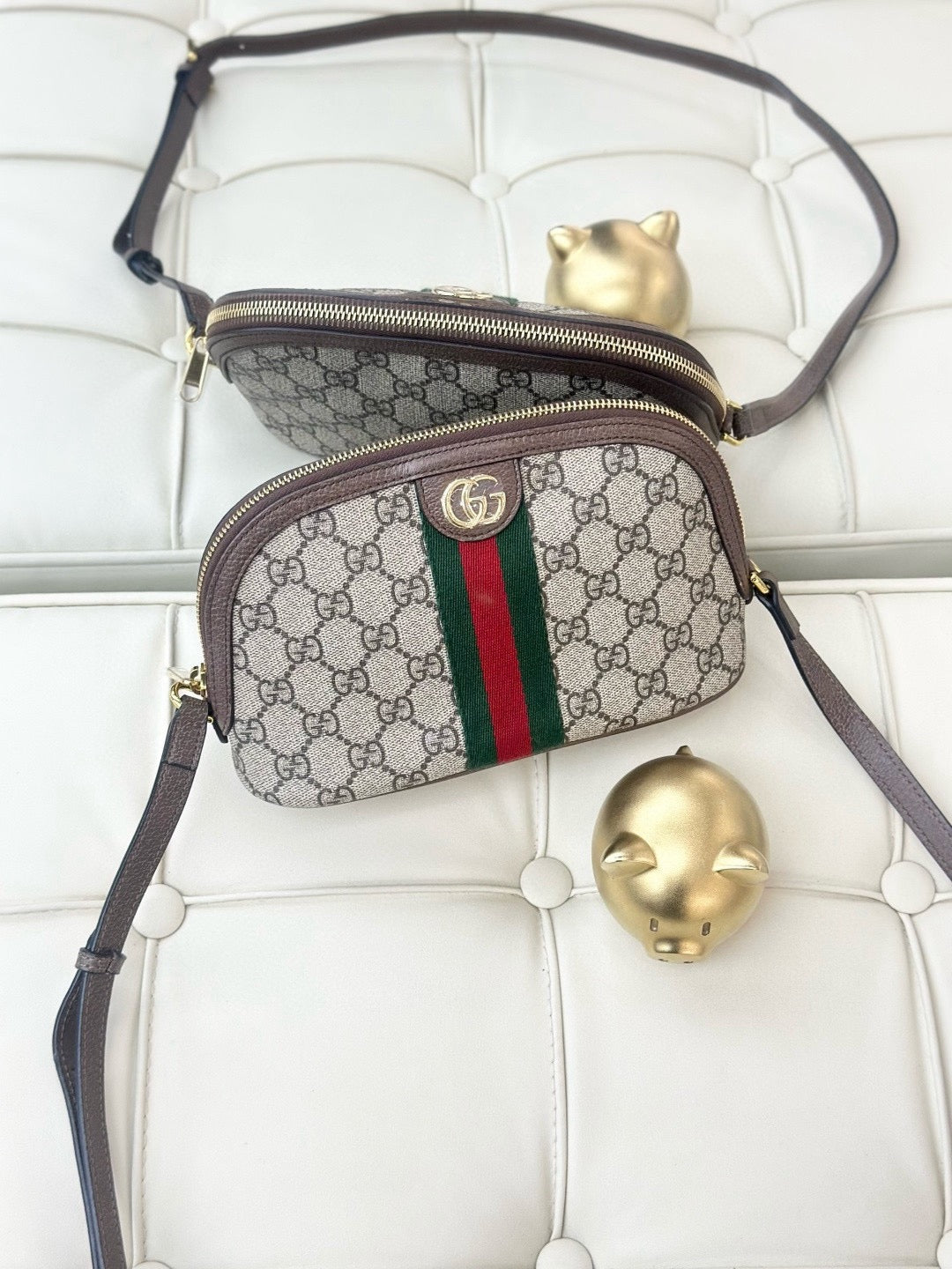 Gucci Ophidia series brown monogram shell cosmetic bag with gold hardware (modified)