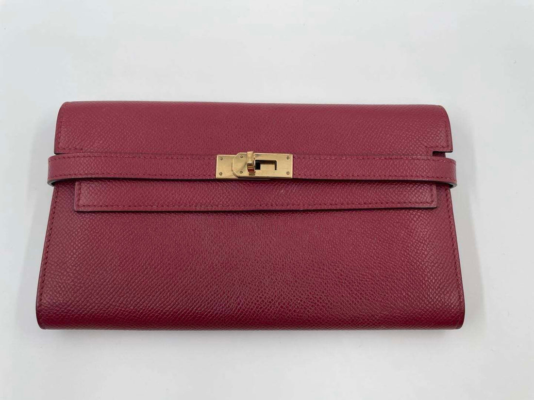 Hermes Kelly Classique Wallet in Epsom Leather-Ruby Red with Gold Tone Hardware