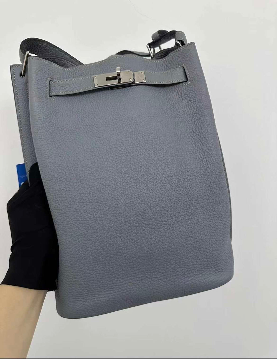 Hermes Evelyne PM Bag Blue Pale Clemence Leather with Gold Hardware
