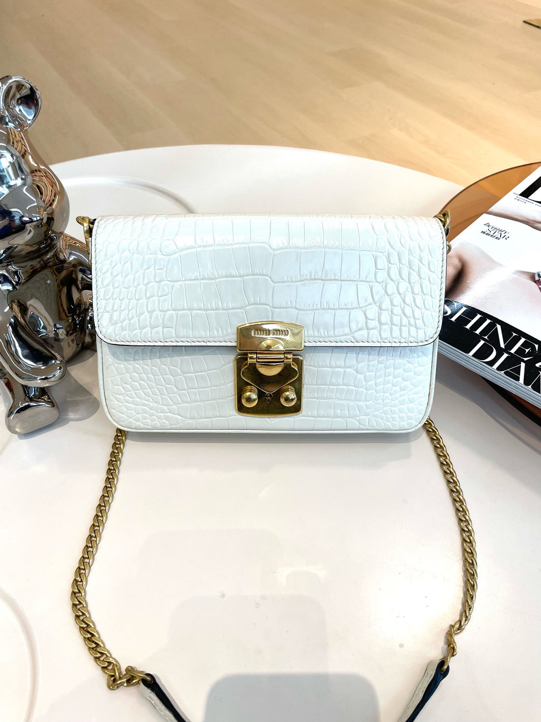 Miu Miu white crocodile-embossed leather shoulder bag
