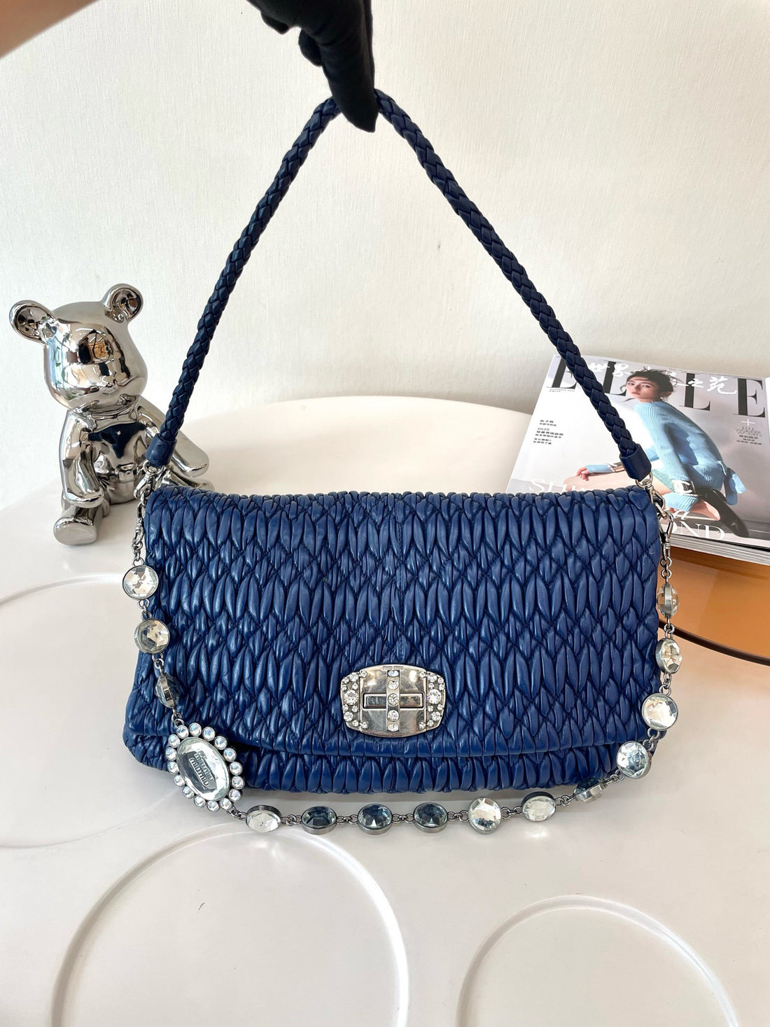Miu Miu Pleated Nappa Leather Crystal Shoulder Bag