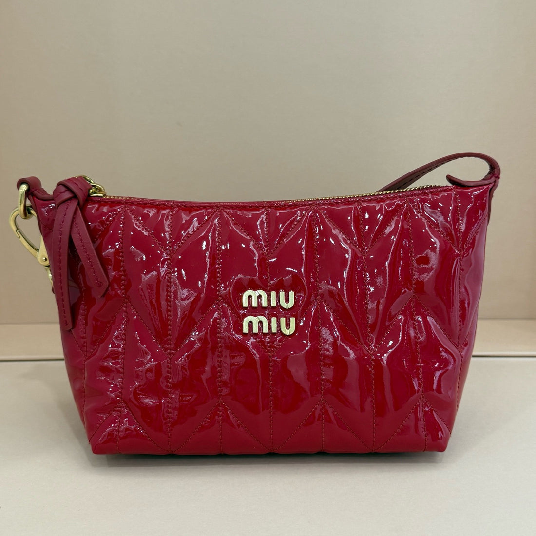 Miu Miu red patent leather small zip-up shoulder bag