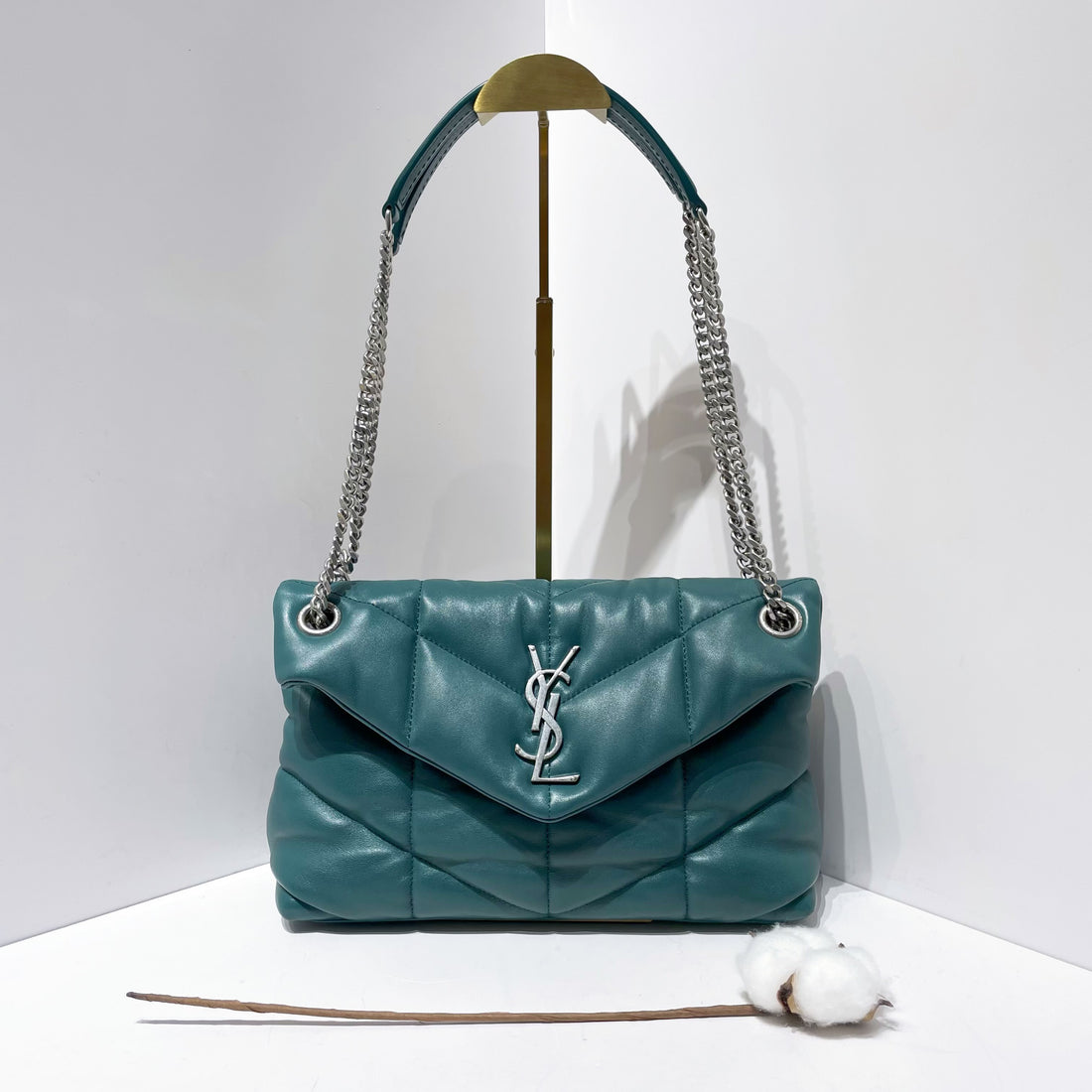 YSL Loulou down-filled shoulder bag, small quilted leather crossbody bag.