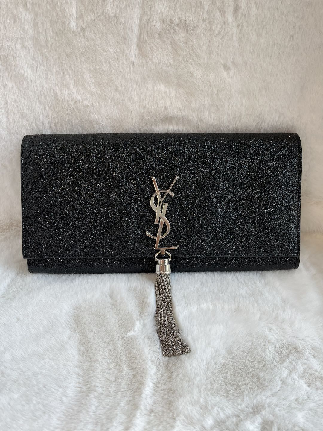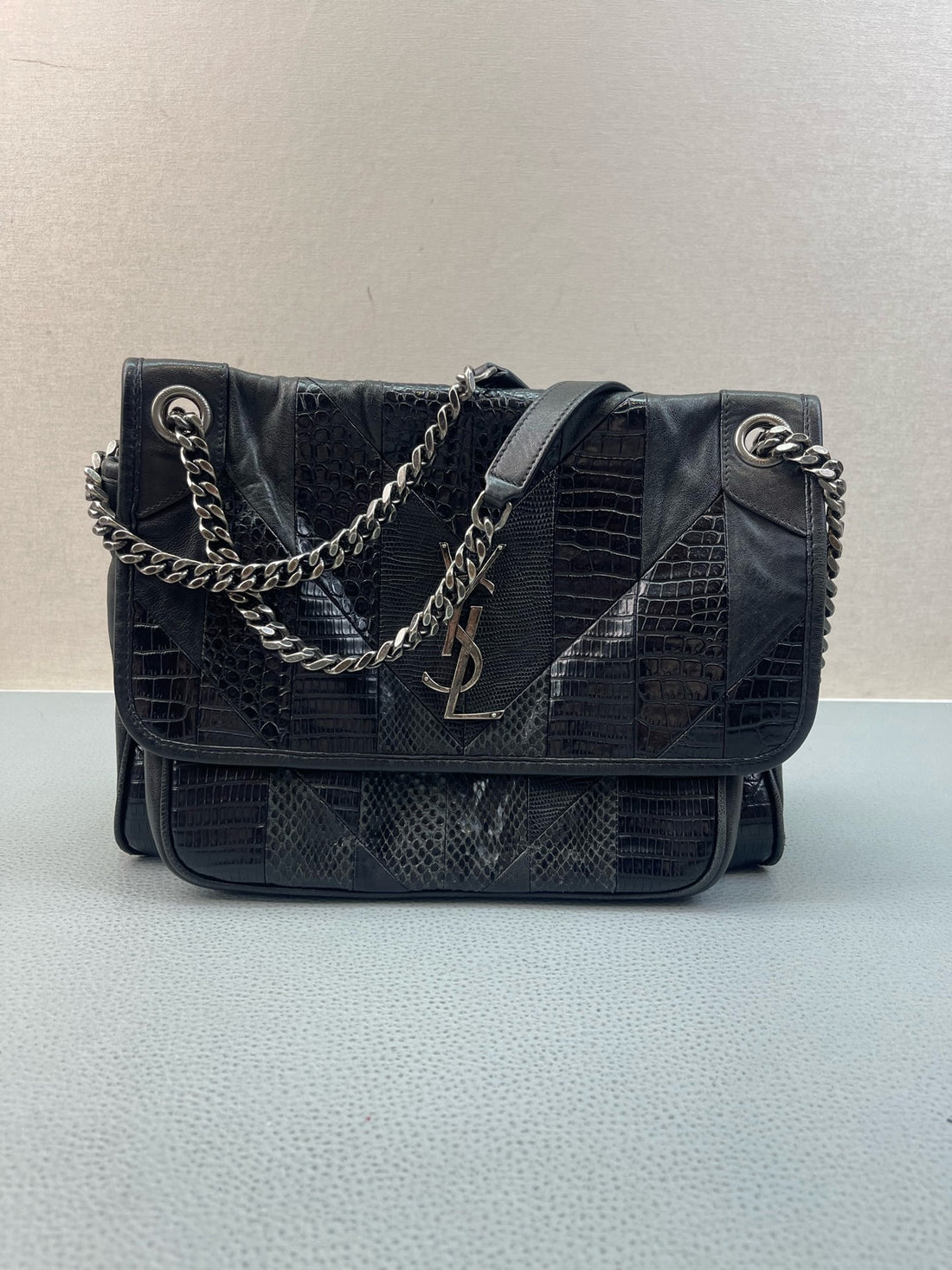 EUC Saint Laurent YSL Triquilt Medium Envelope Flap Pebbled Silver HW