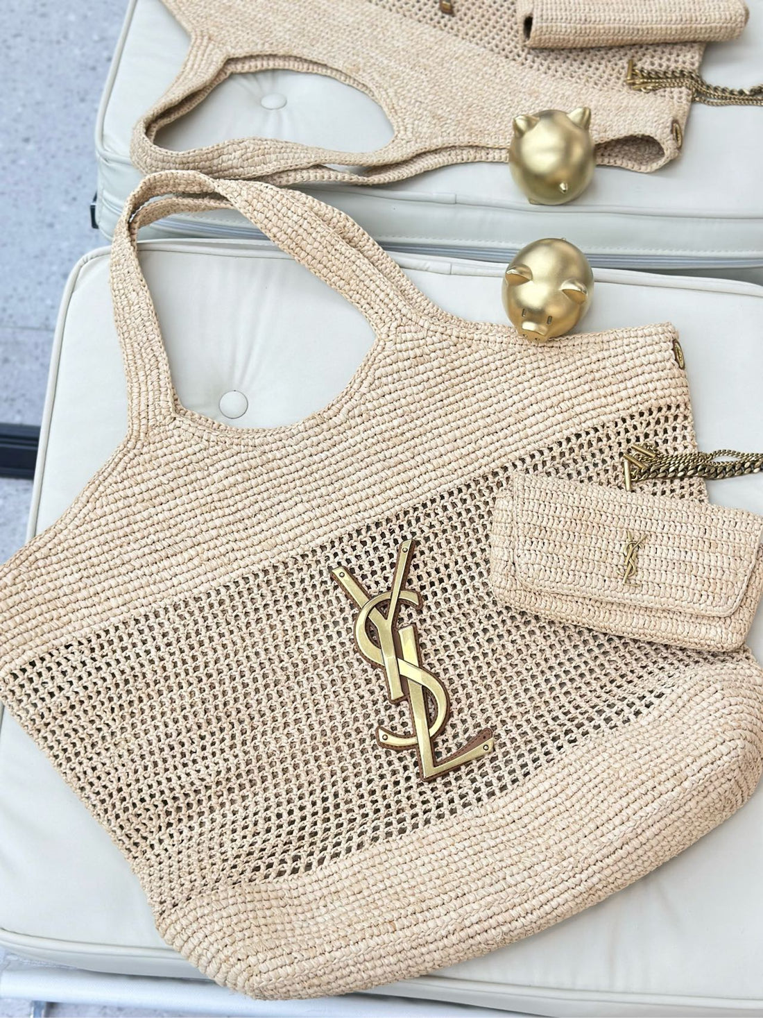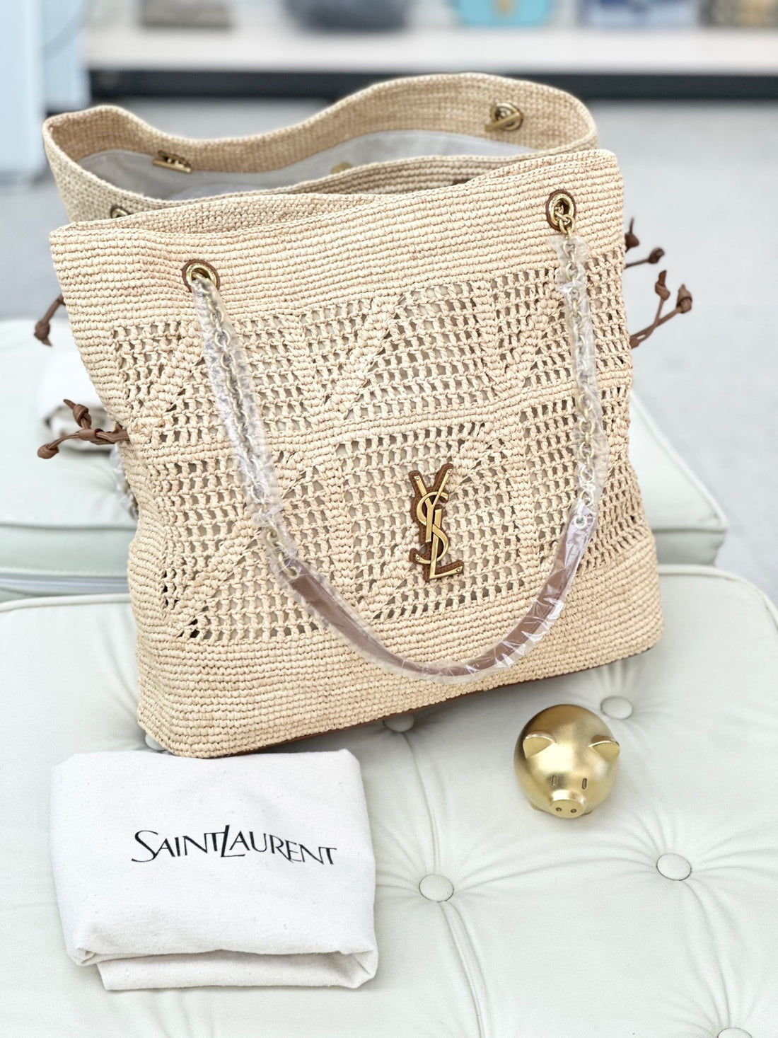 YSL Jamie Medium Raffia Woven Handbag, Natural Color