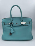 Birkin 30 Blue Jean Colour in Togo Leather with palladium hardware. Hermès