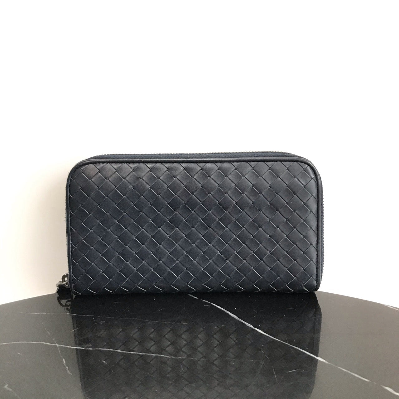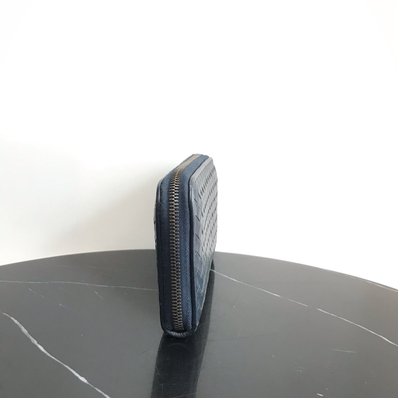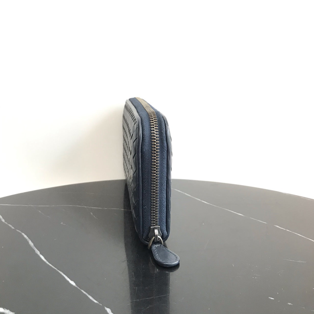 Bottega Veneta Intrecciato Zippered Leather Wallet - Dark Brown
