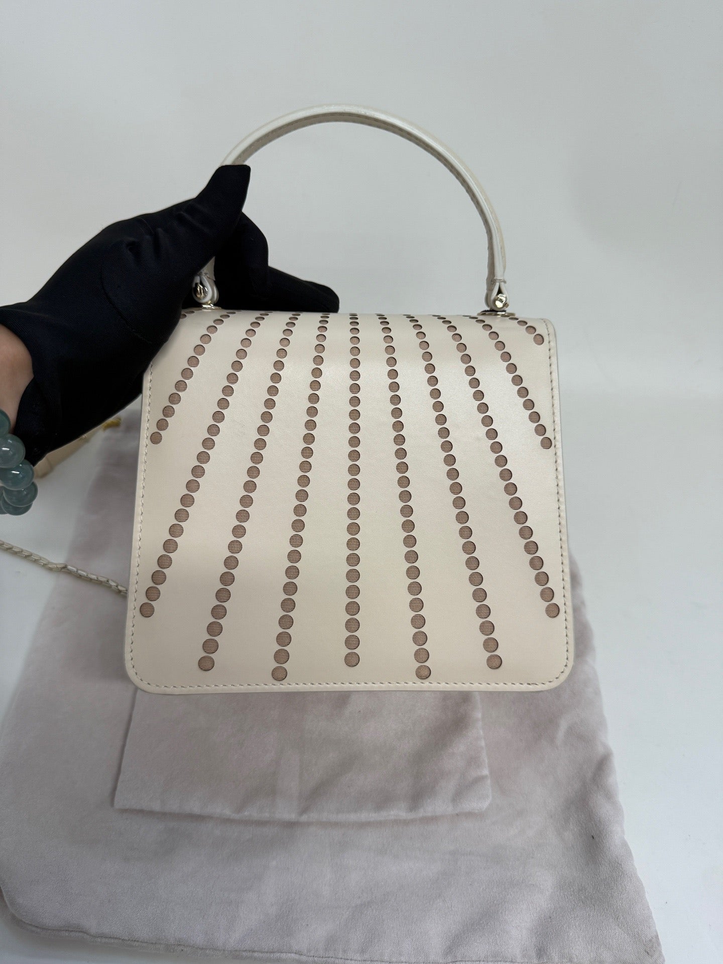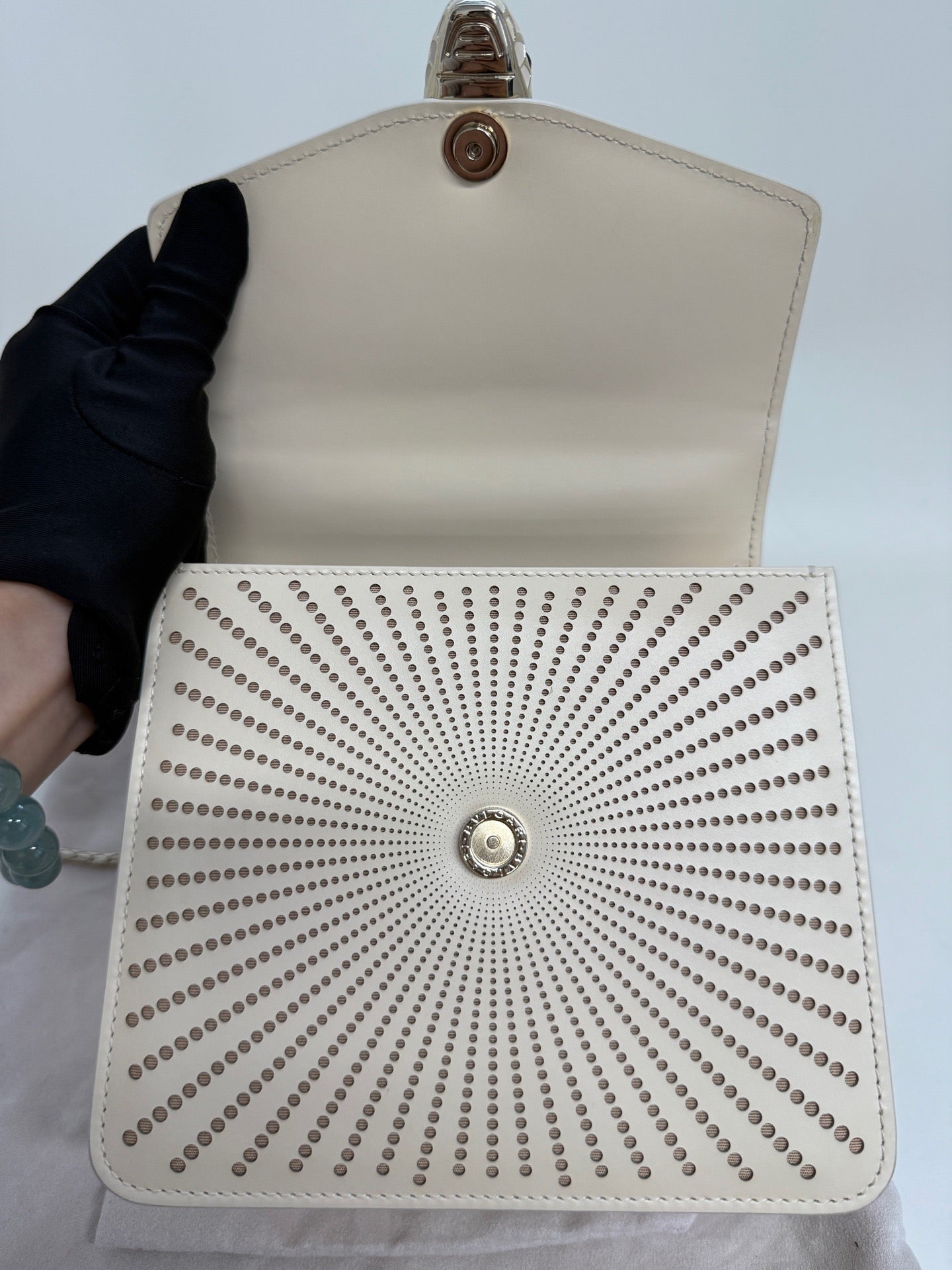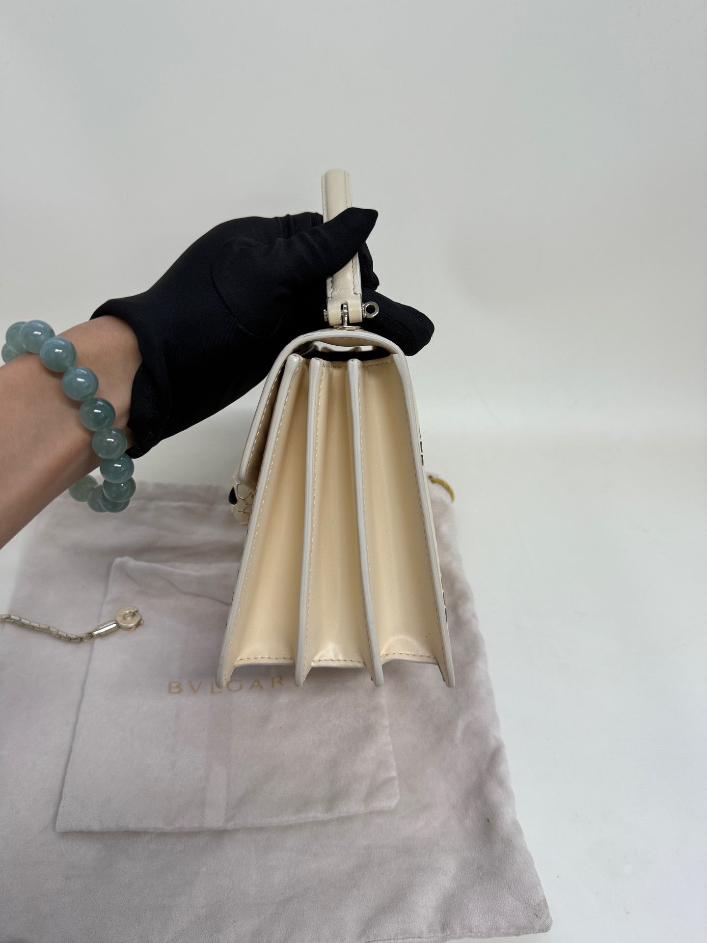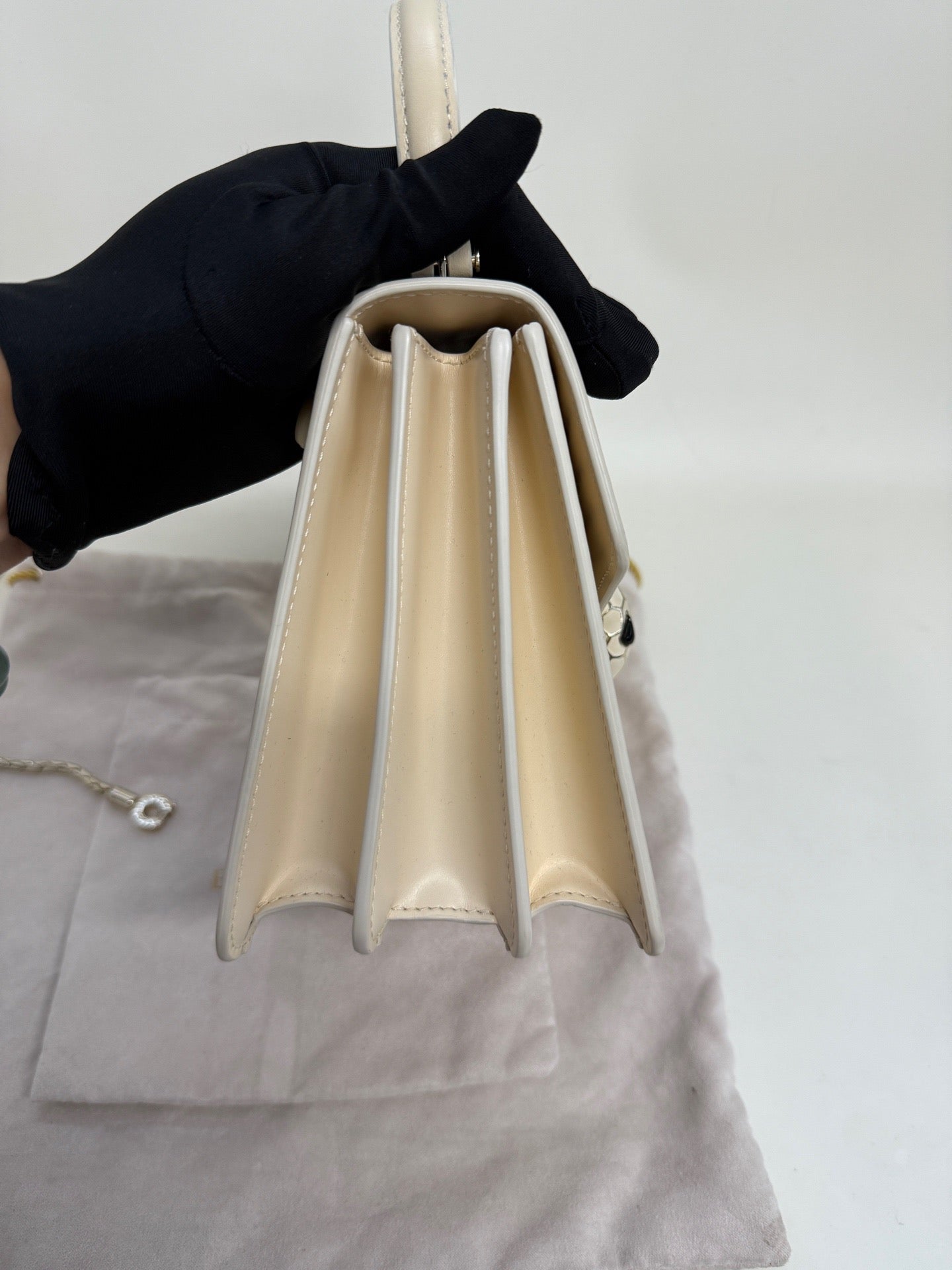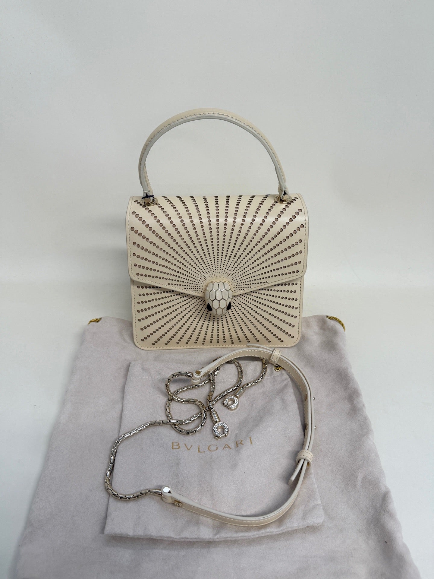 Bulgari Serpenti Forever calfskin shoulder bag, classic ivory color for women.