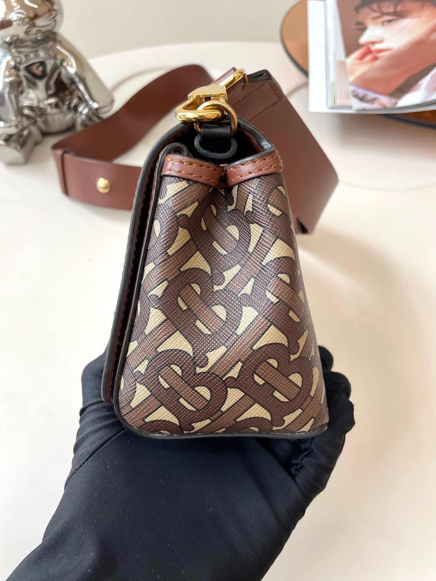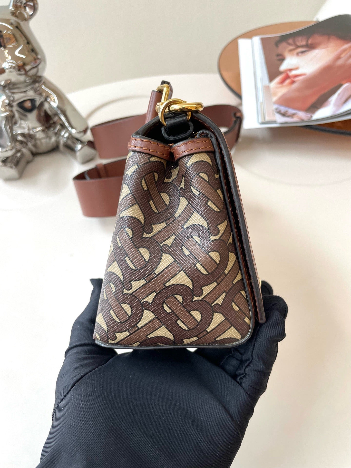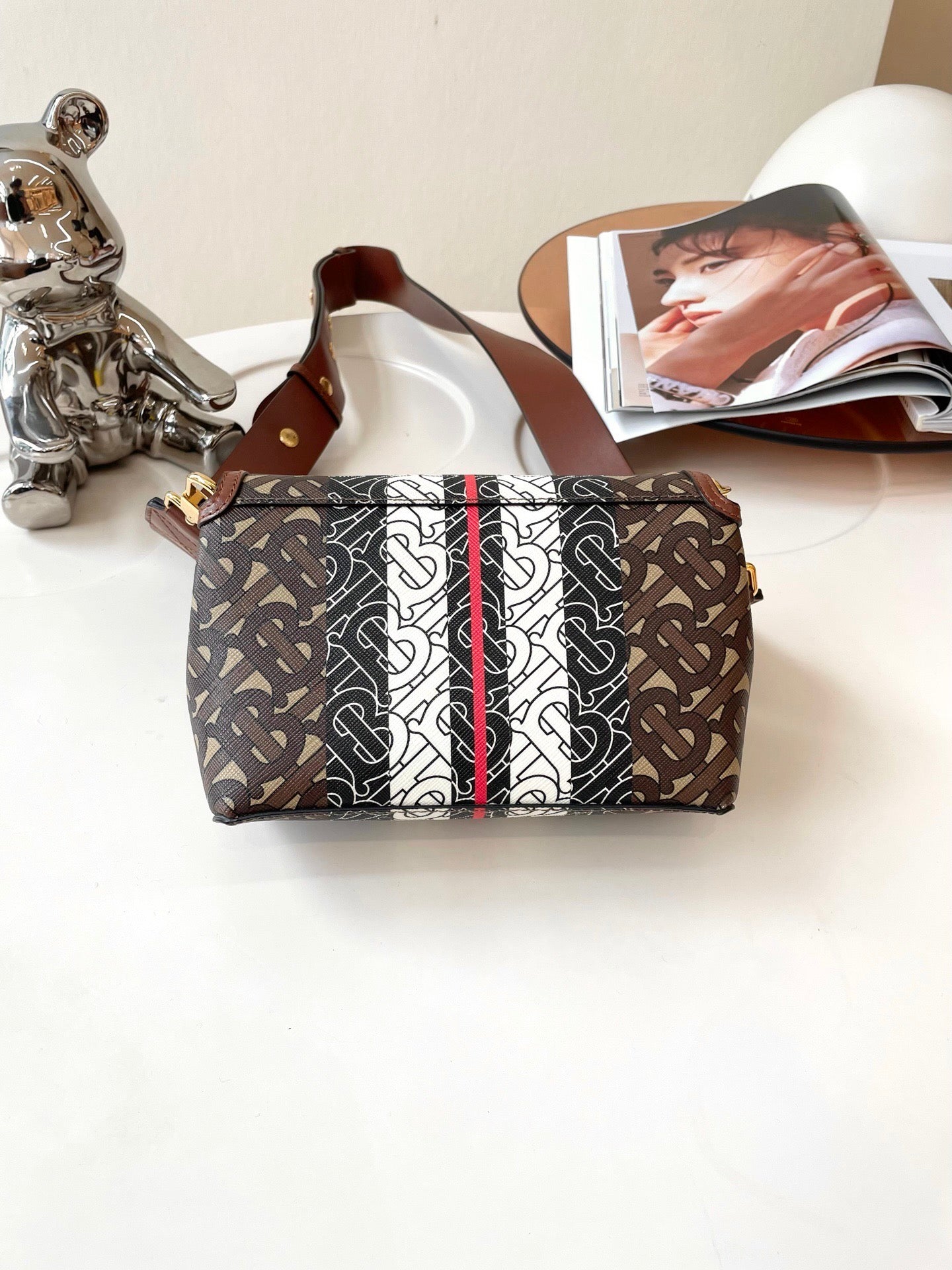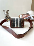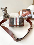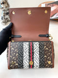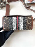 Burberry E-Canvas Monogram Stripe Hackberry Crossbody Bag, Saddle Brown