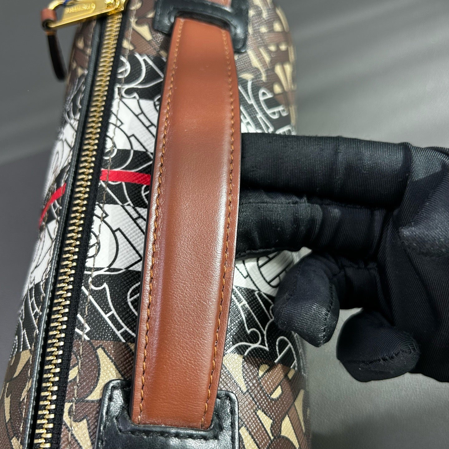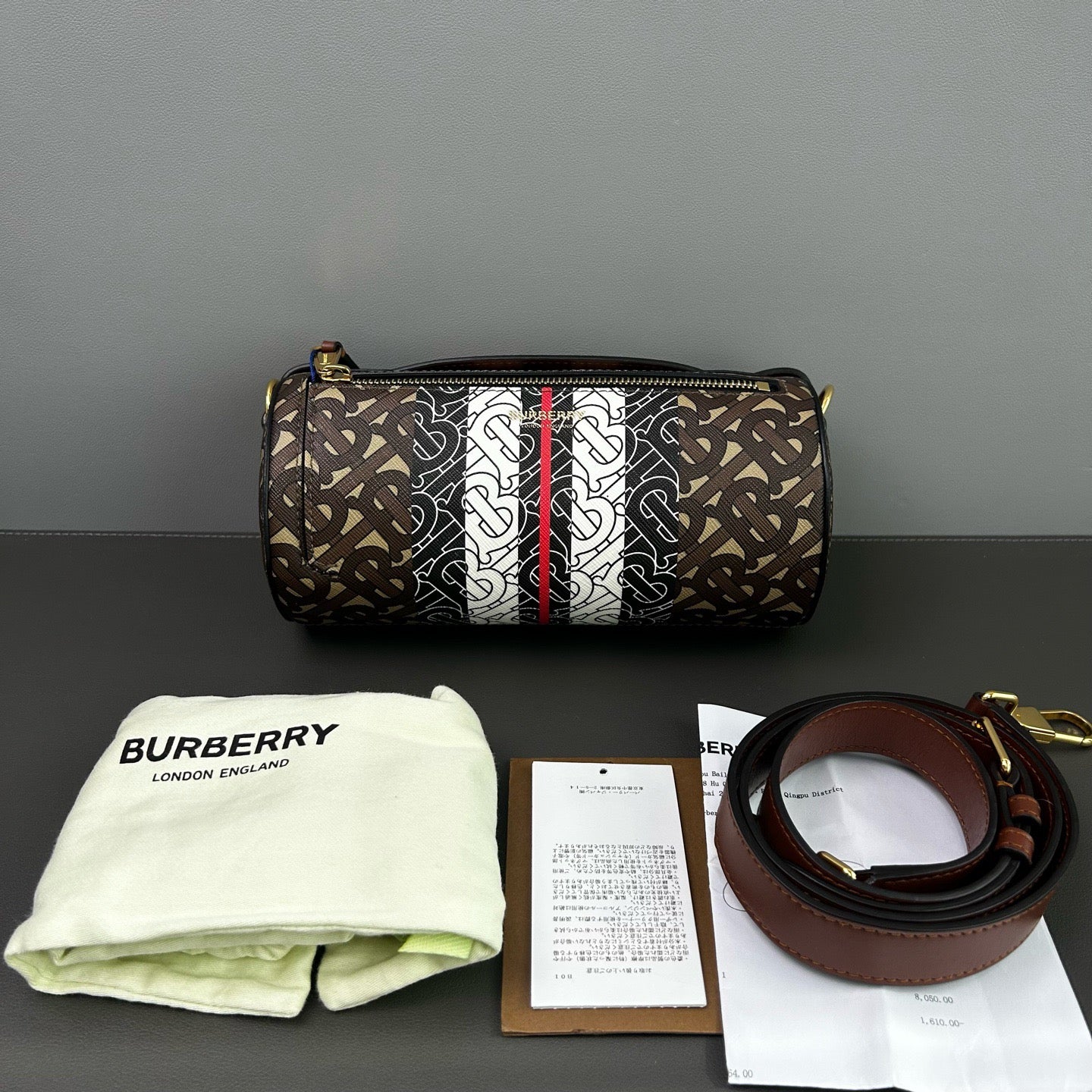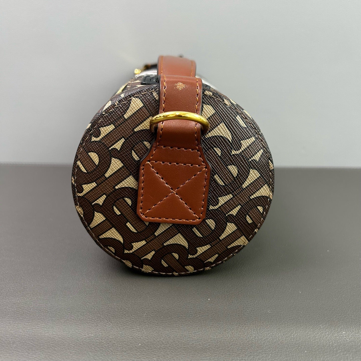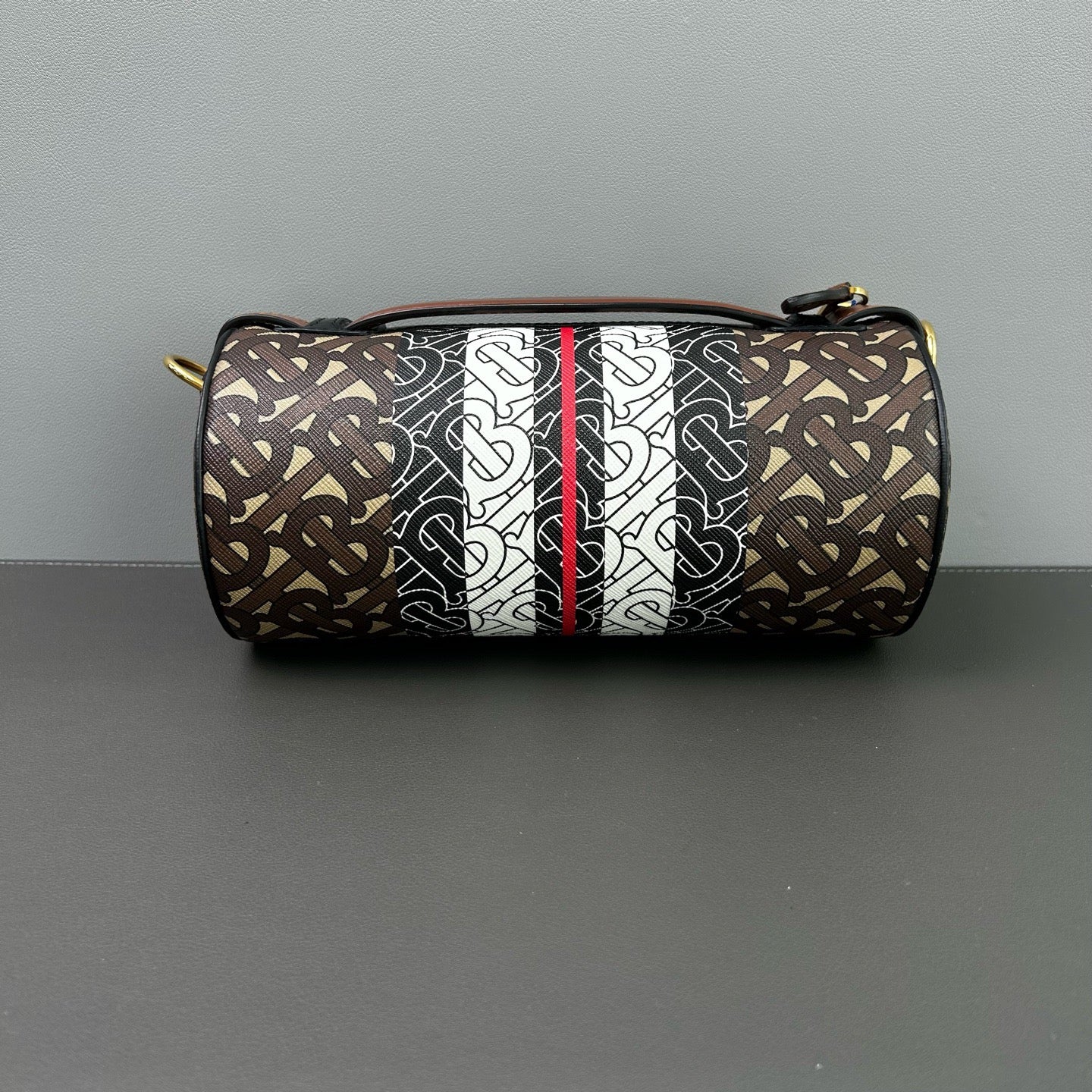 Burberry Monogram Stripe Shoulder Bag, PVC Leather, Brown