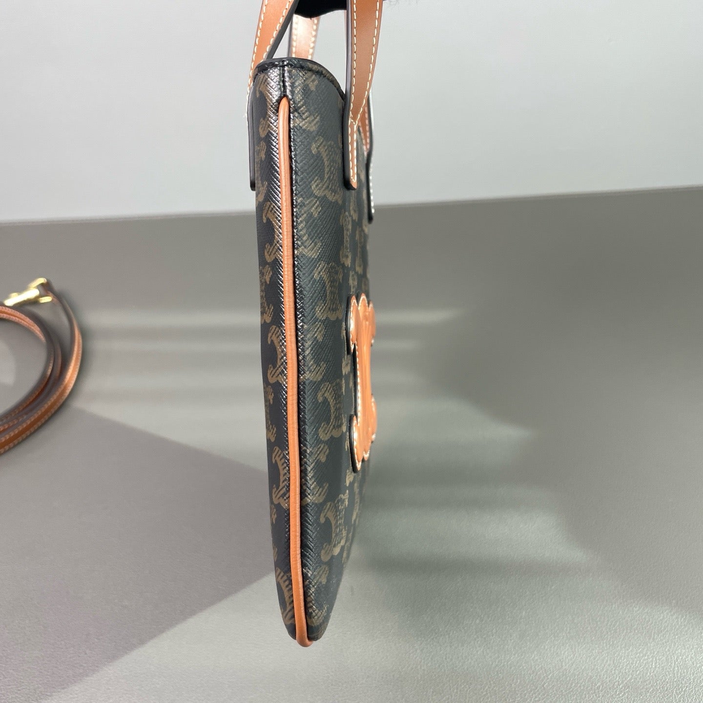 Celine Cabas Micro Triomphe Canvas and Leather Handbag, Women's, Brown