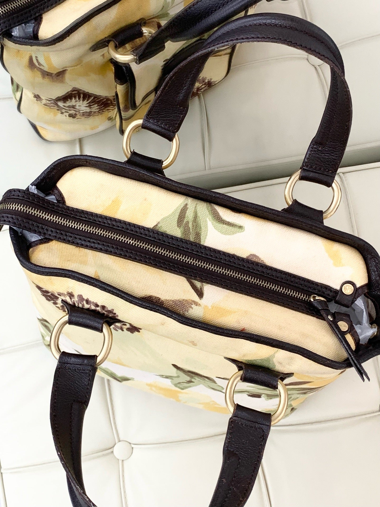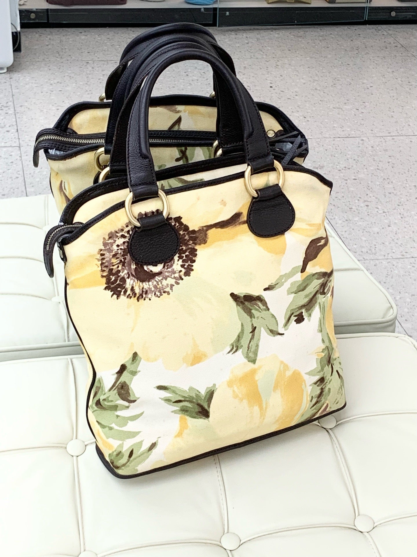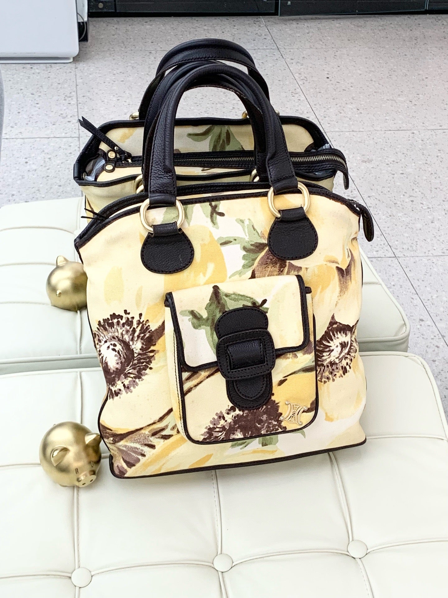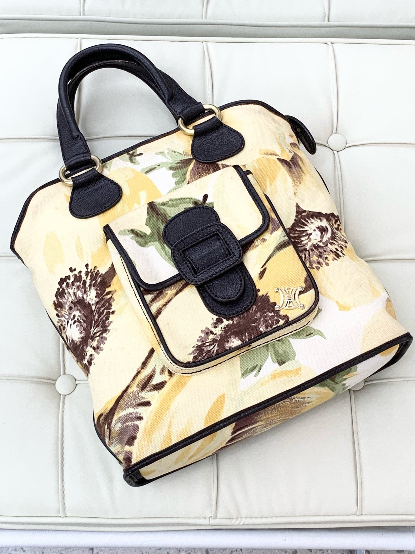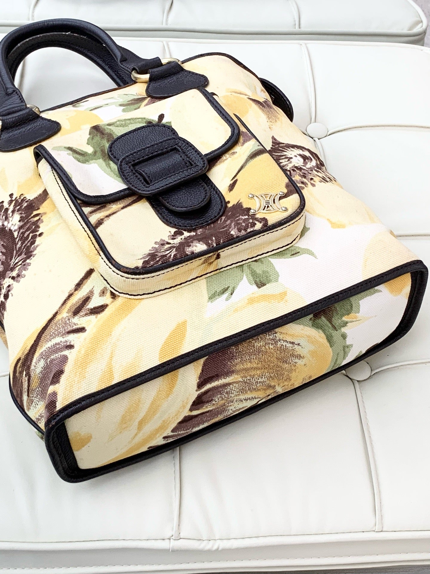 Celine Yellow Floral Canvas Tote Bag with Gold Buckle