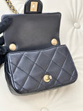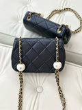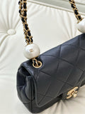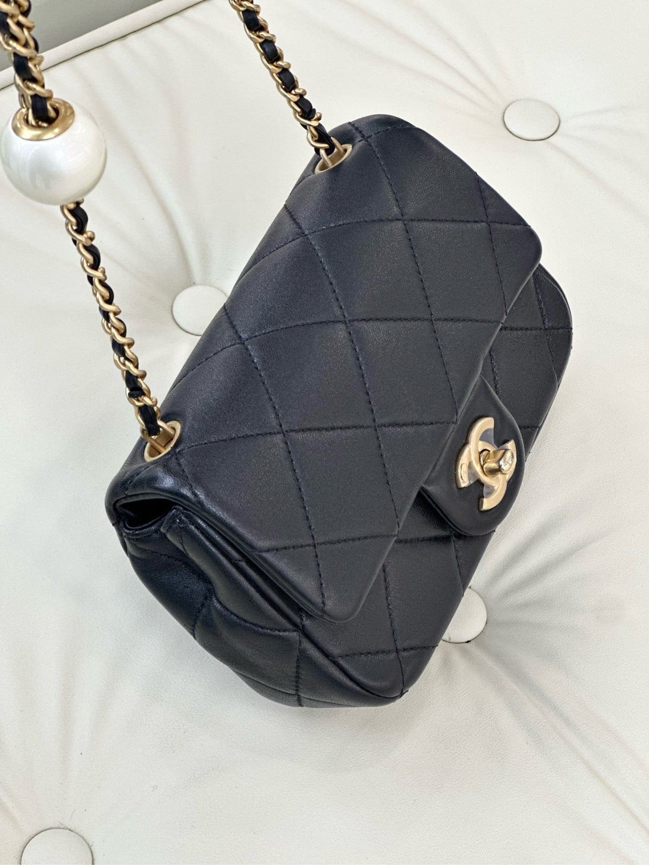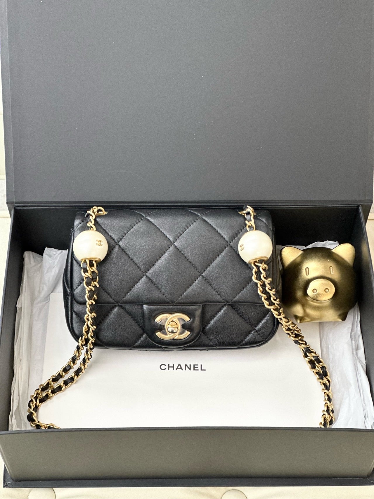 Chanel 24S Black Lambskin Gold Buckle Pearl Adjustable Clasp Chain Square Fat Bag