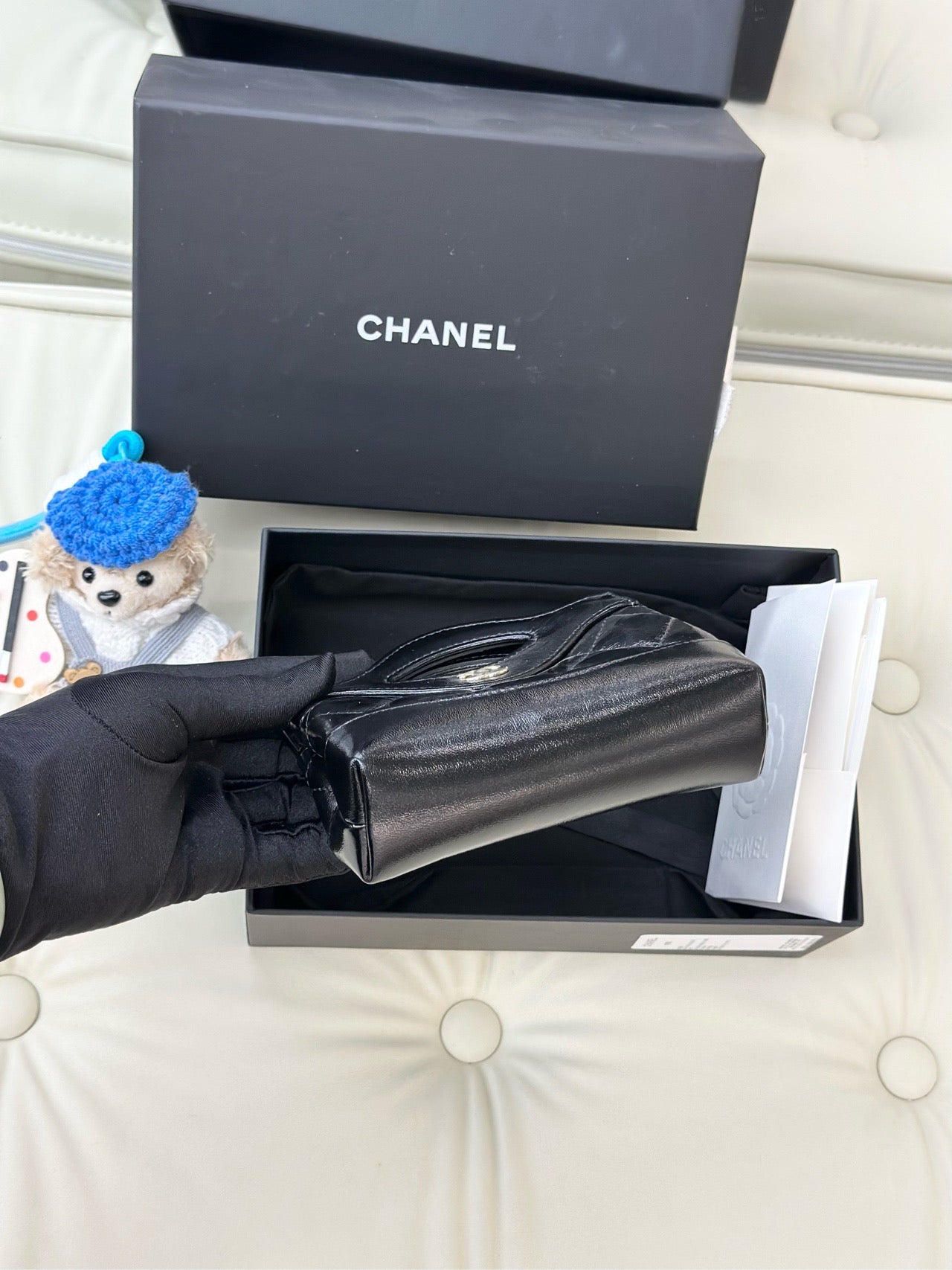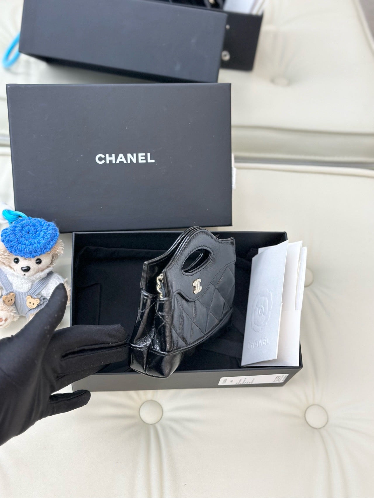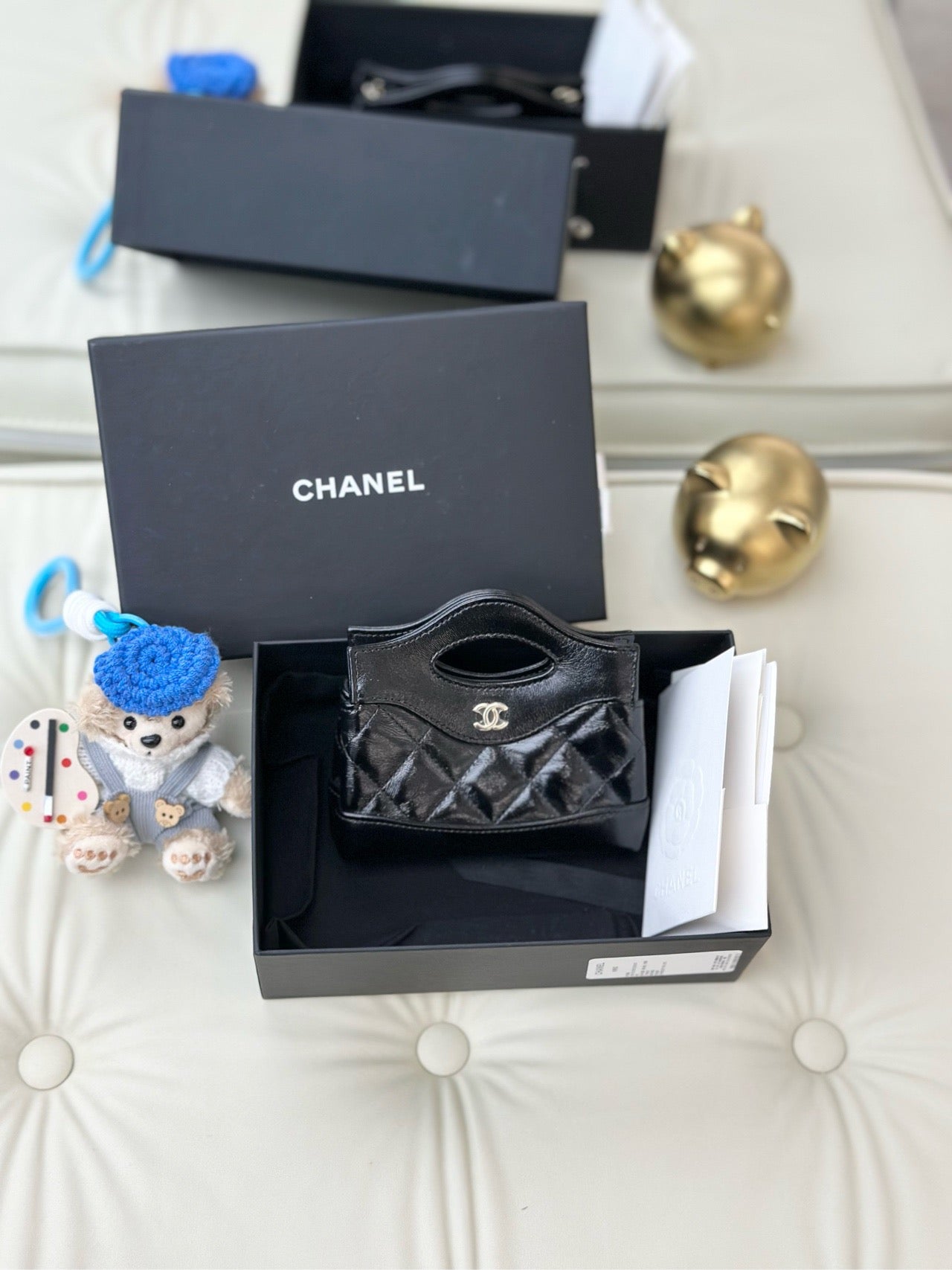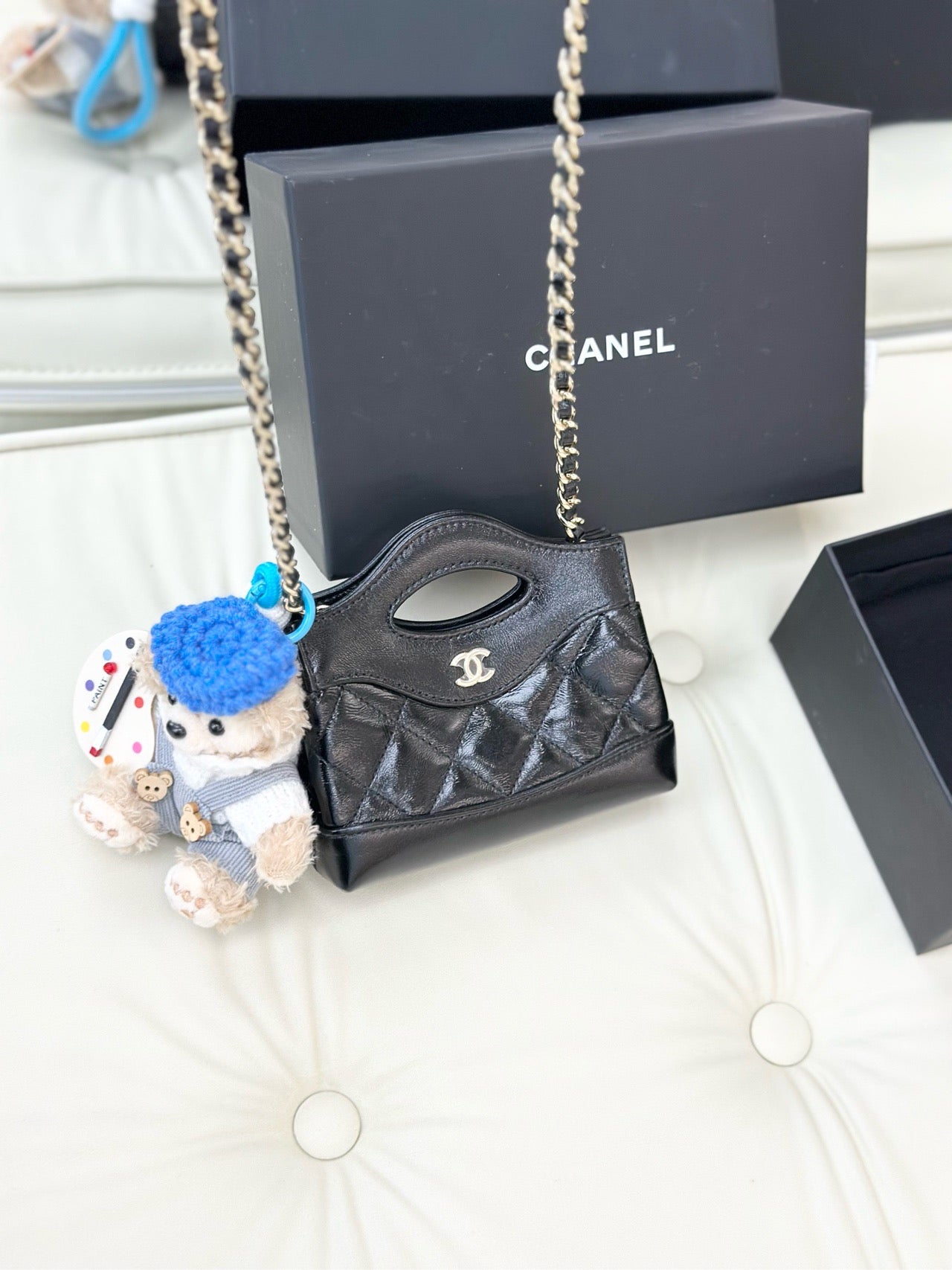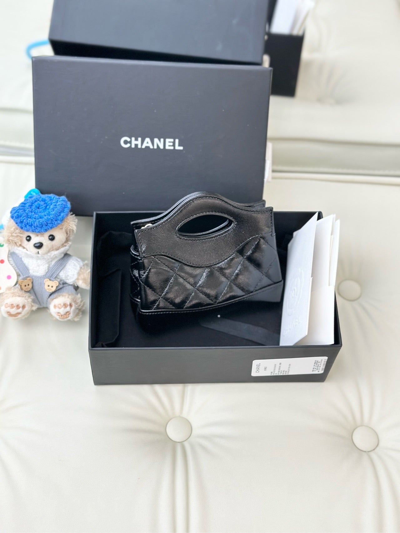 Chanel 24S series 31 bag mini, black vintage lambskin with light gold hardware.