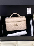 CHANEL 25P Beige/Milk Tea Color Lychee Grain Leather Handbag with Light Gold Buckle