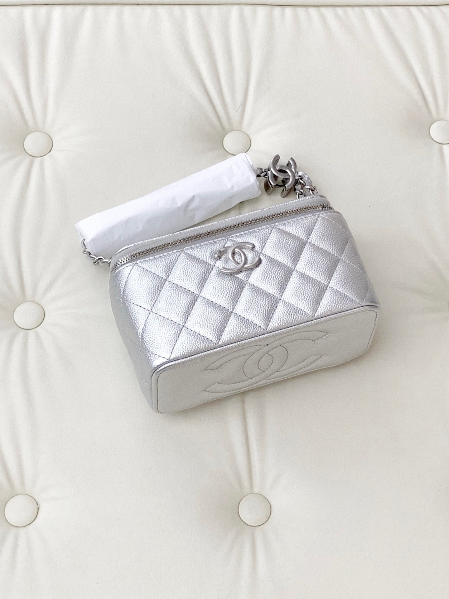 Chanel 25P Mini Bowling Bag, White