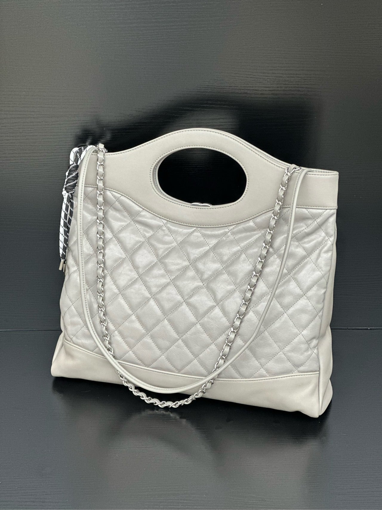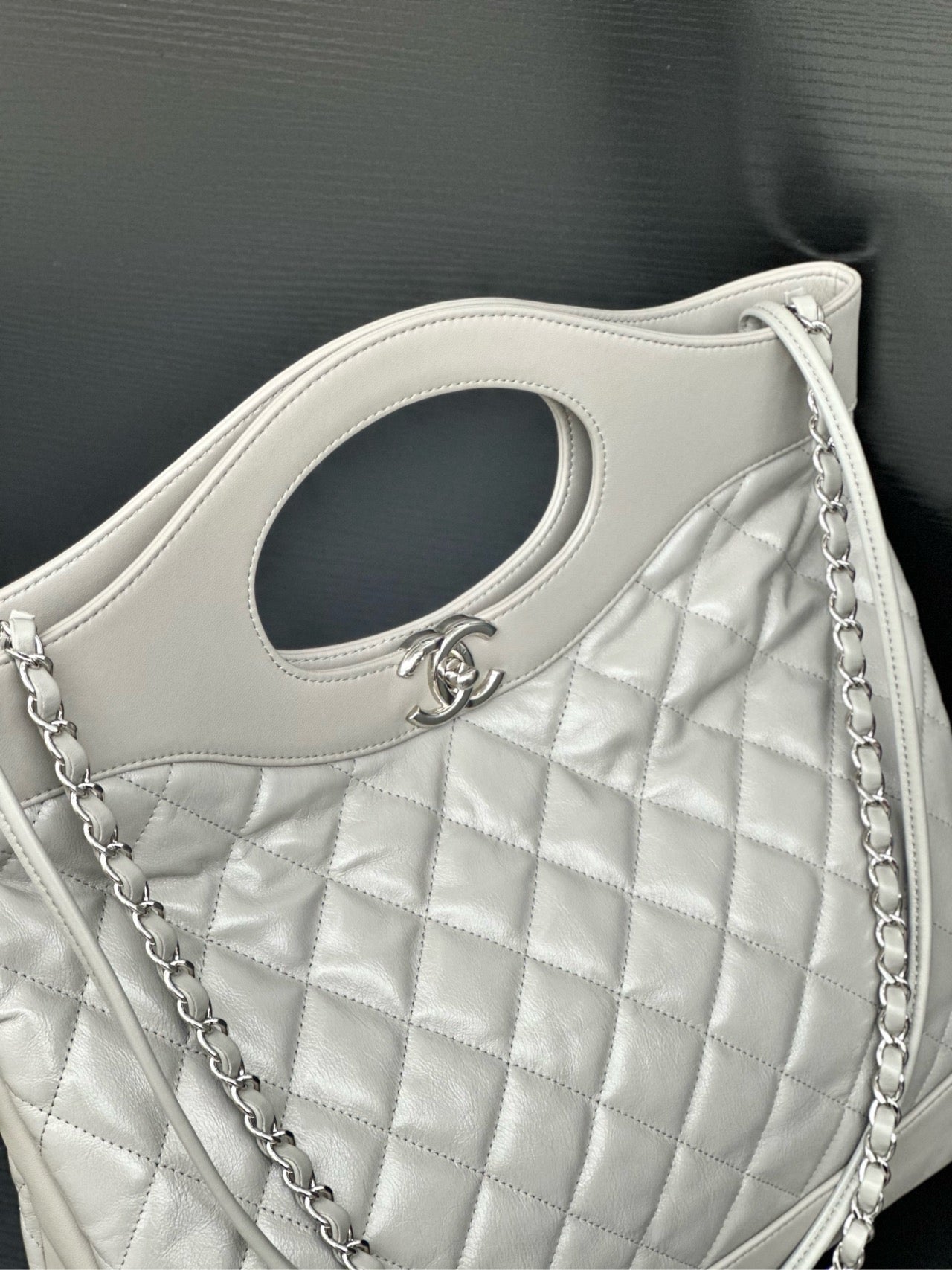 Chanel 31bag, large size, wrinkled calfskin, grey.