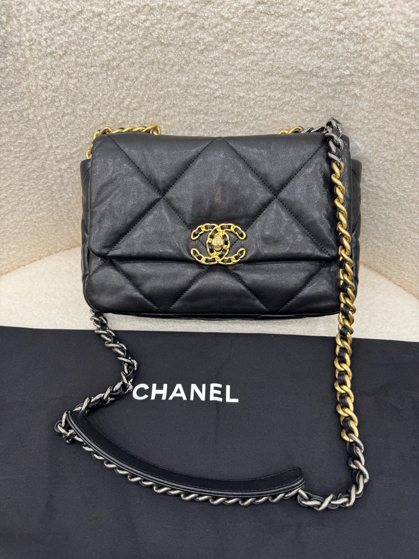 Chanel Black Quilted Leather Medium 19 Flap Bag