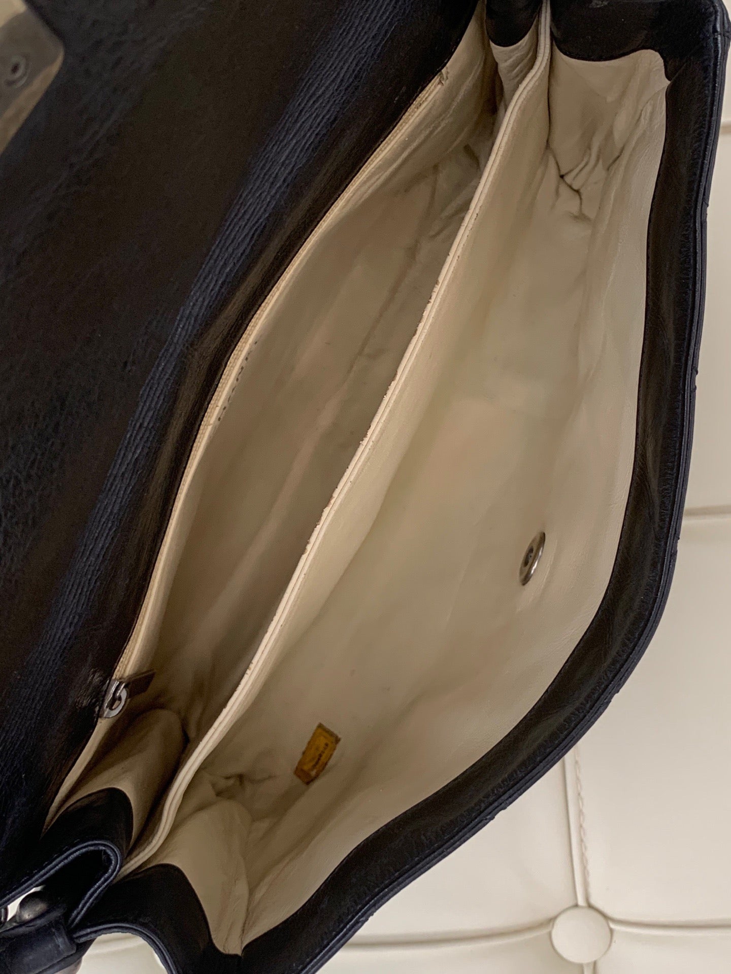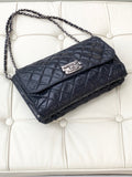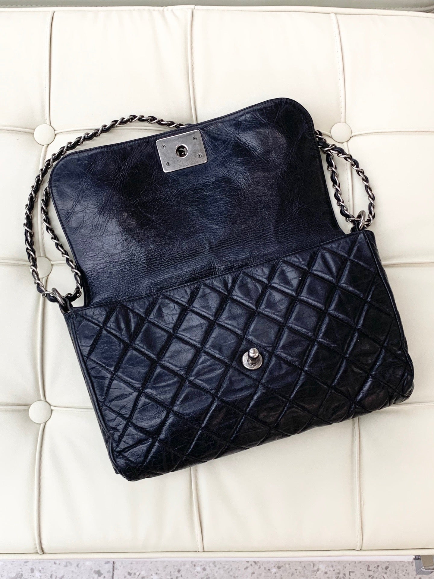 Chanel Bombay Collection Le Boy Black with Silver Buckle, Oil-waxed Calfskin Chain Bag