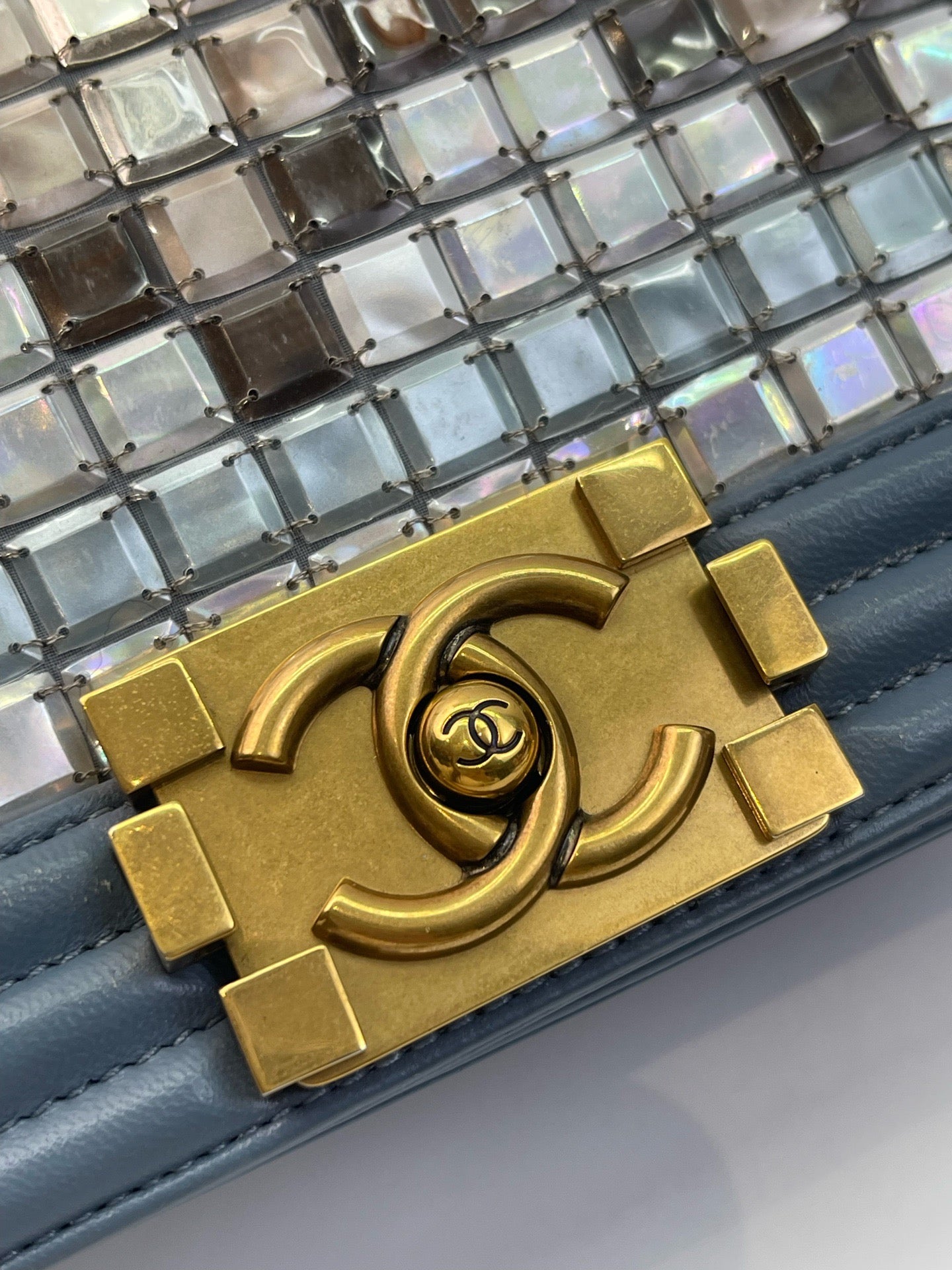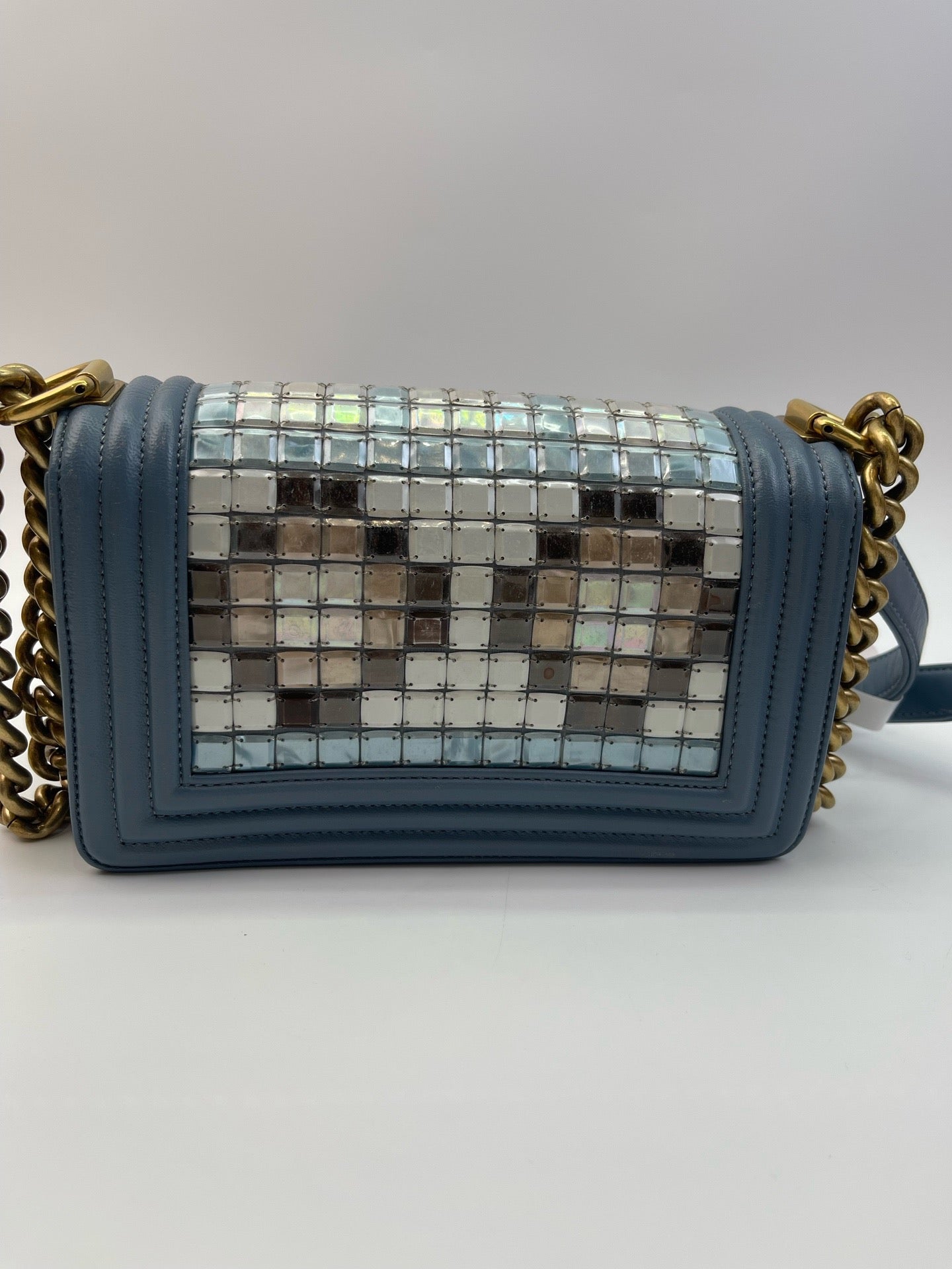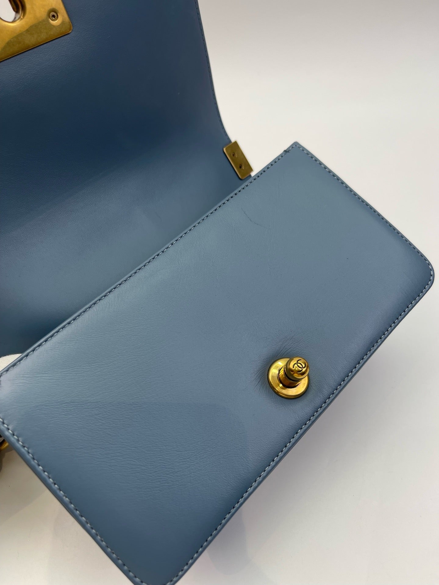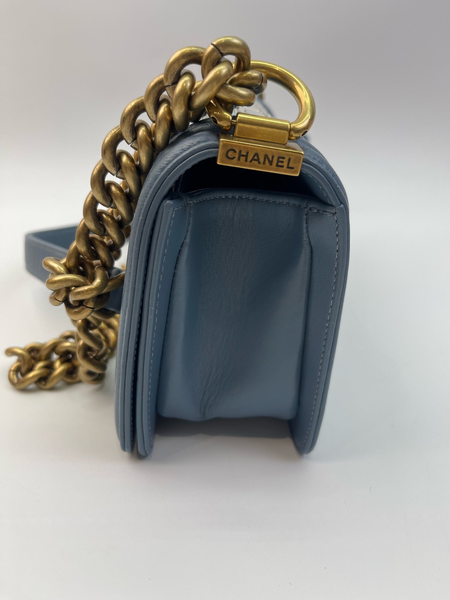 Chanel Boy Chanel 20 Small Lambskin Chain Shoulder Bag, Tile Blue, Gold Metal