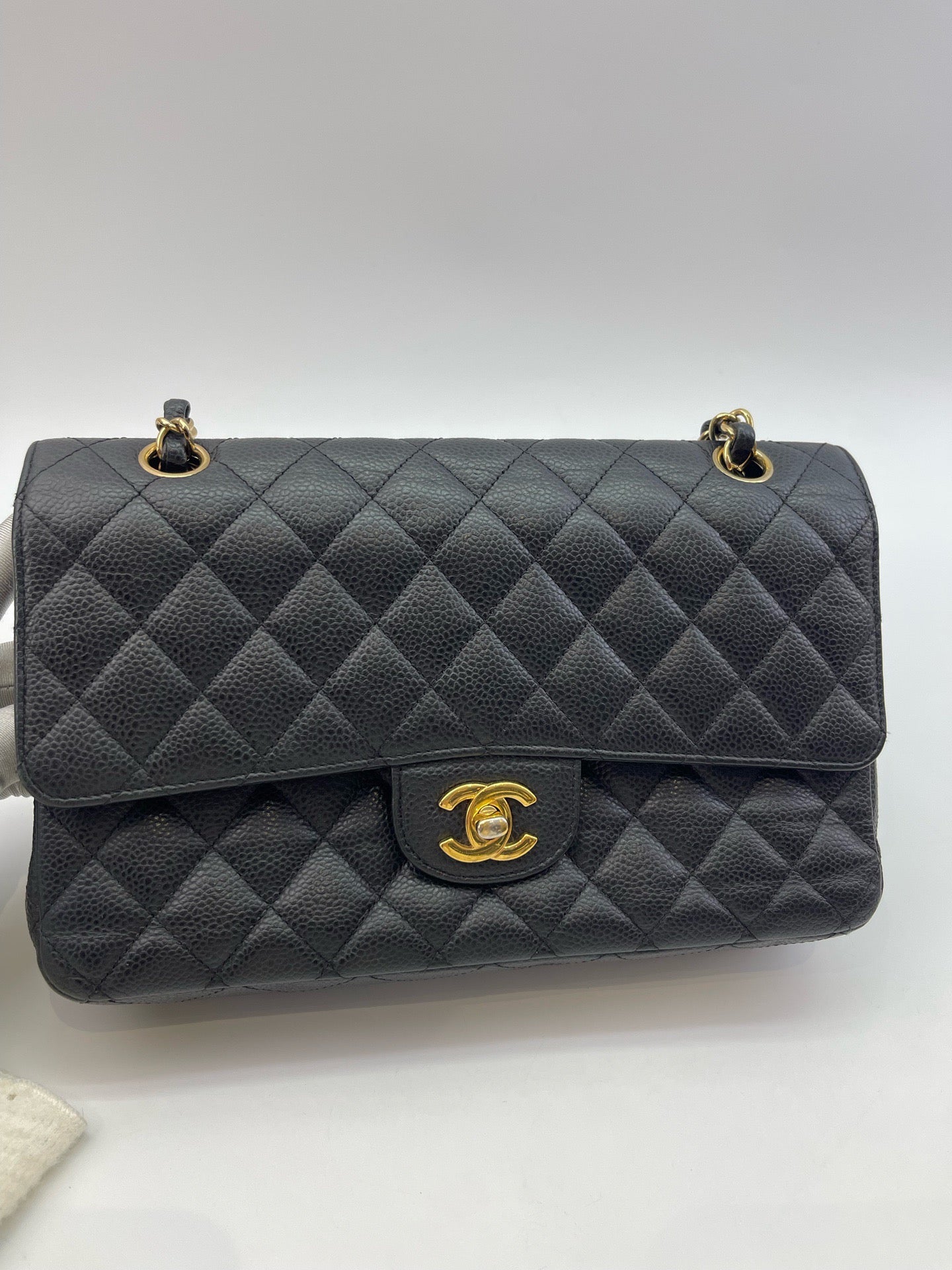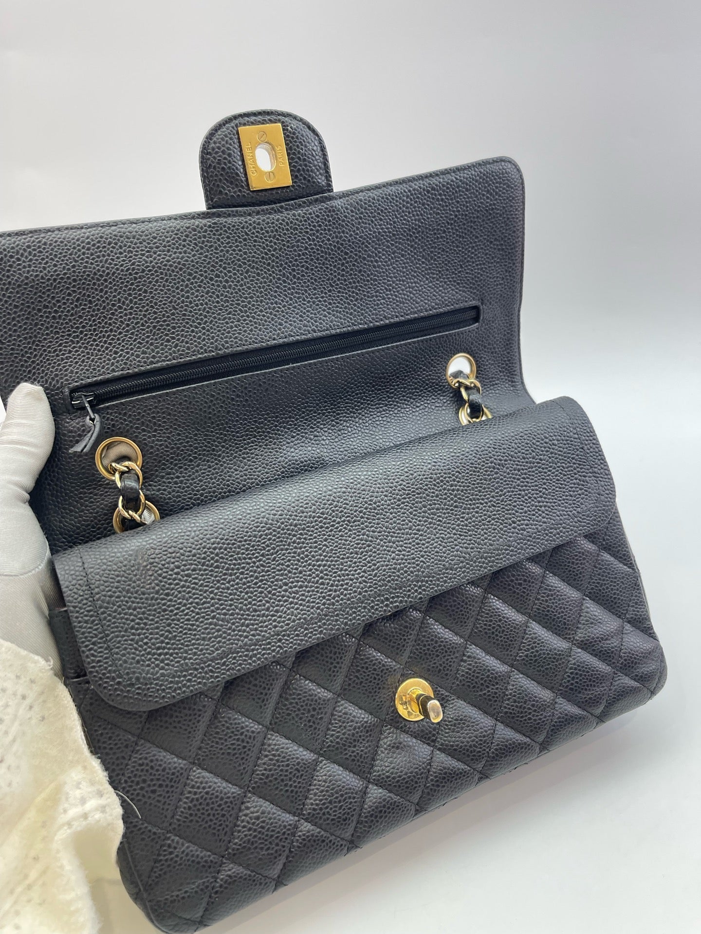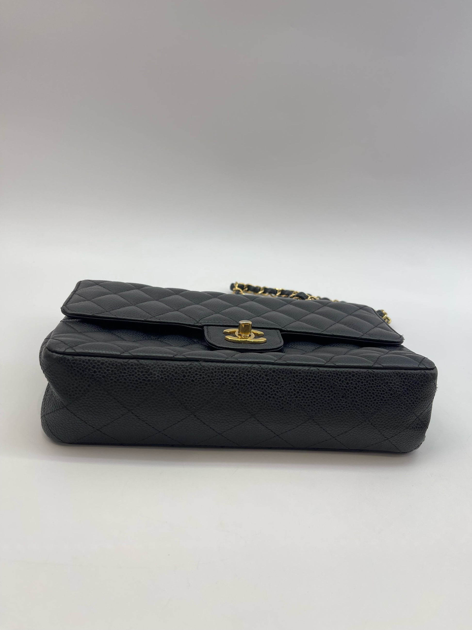 Chanel Caviar Classic Large Flap Shoulder Bag, Black and Gold