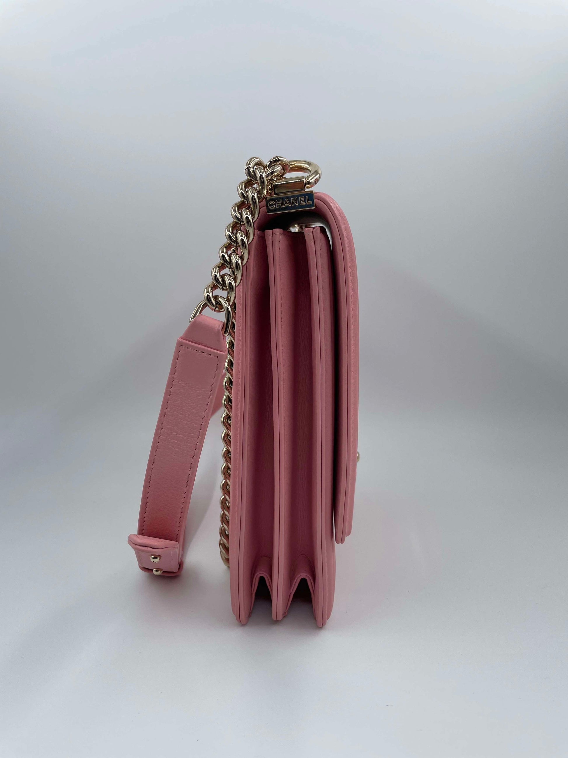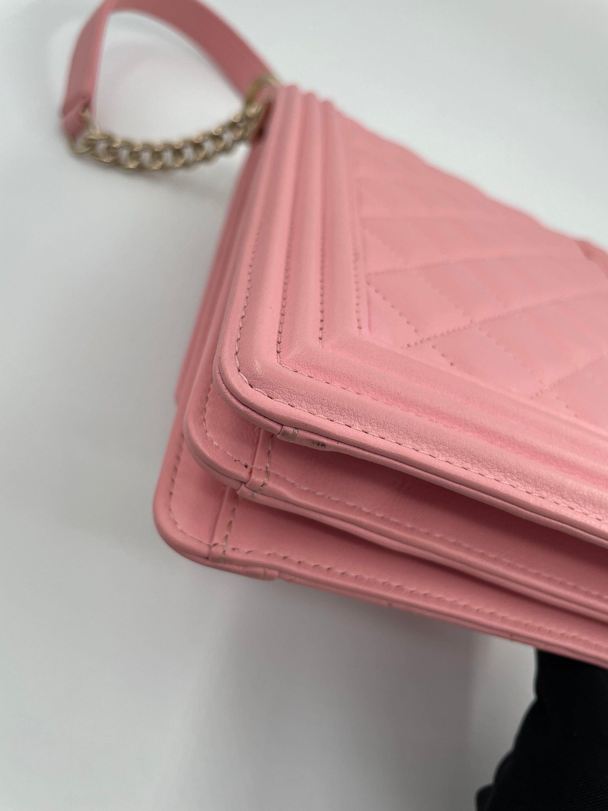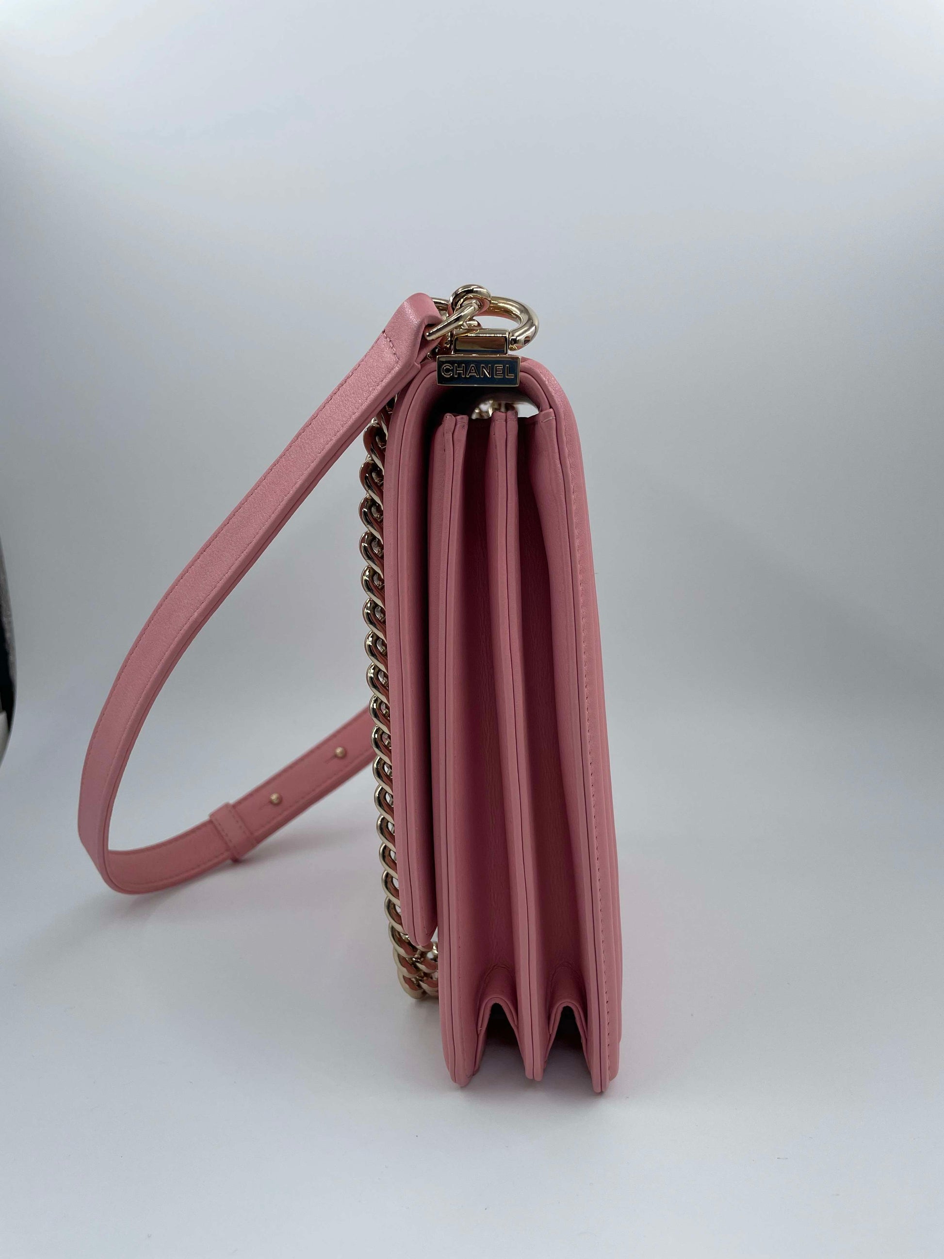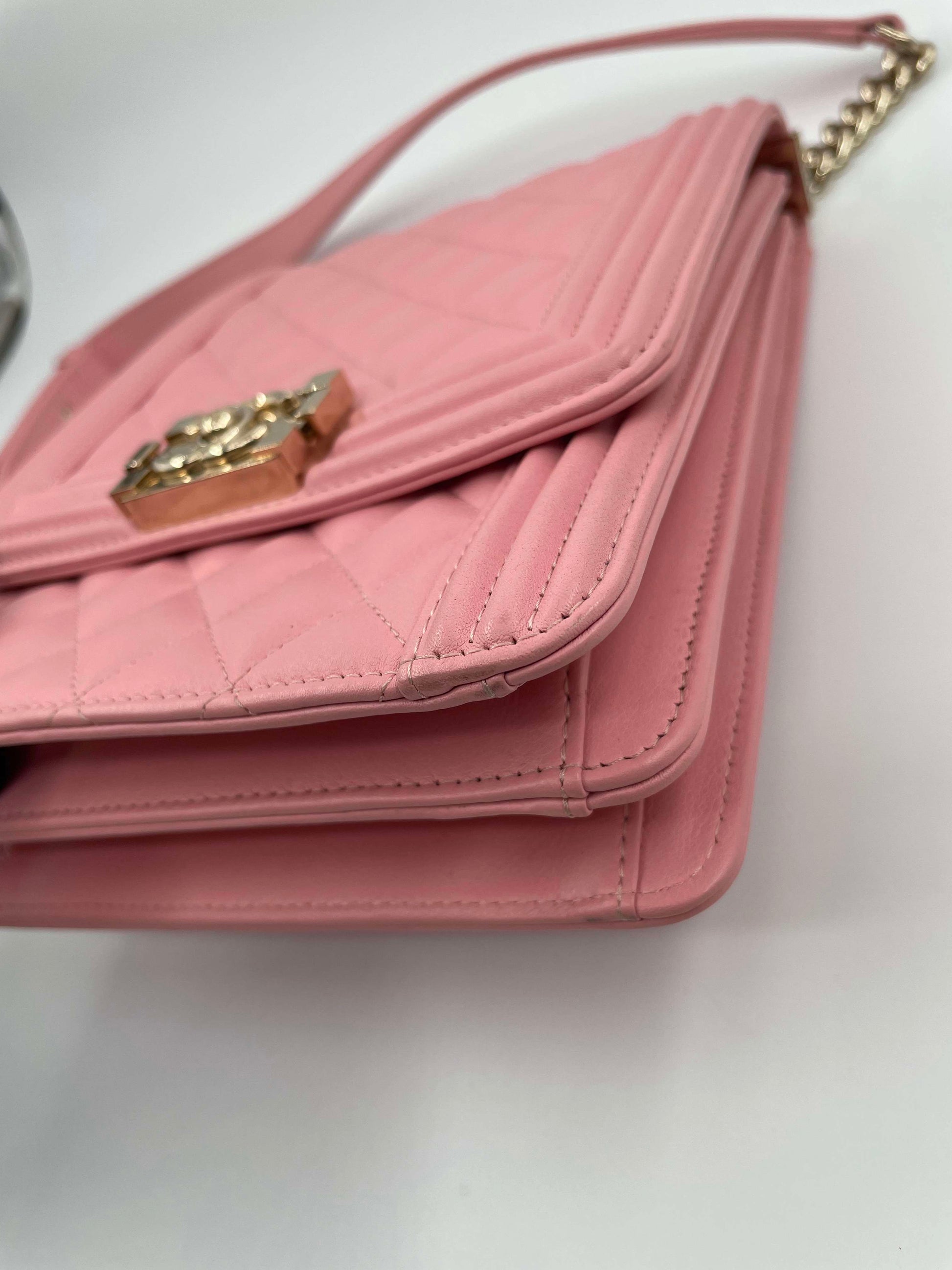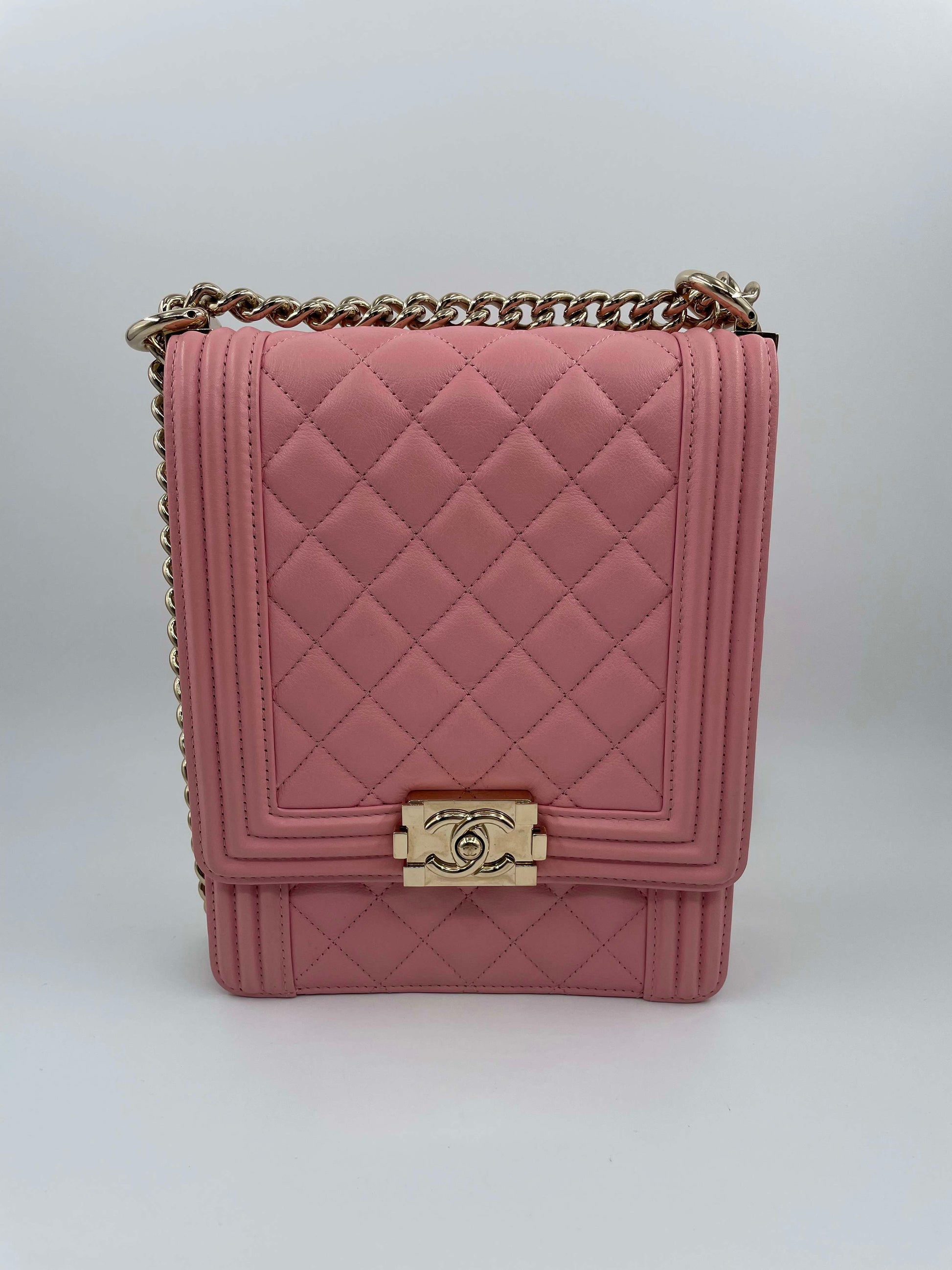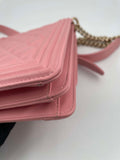 Chanel Chevron Quilted Lambskin North-South Le Boy Crossbody Bag Pink