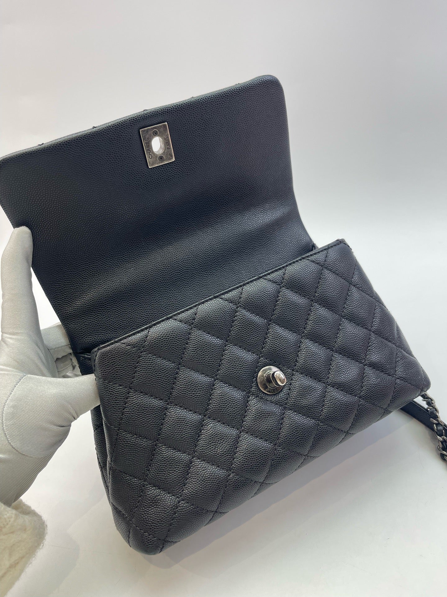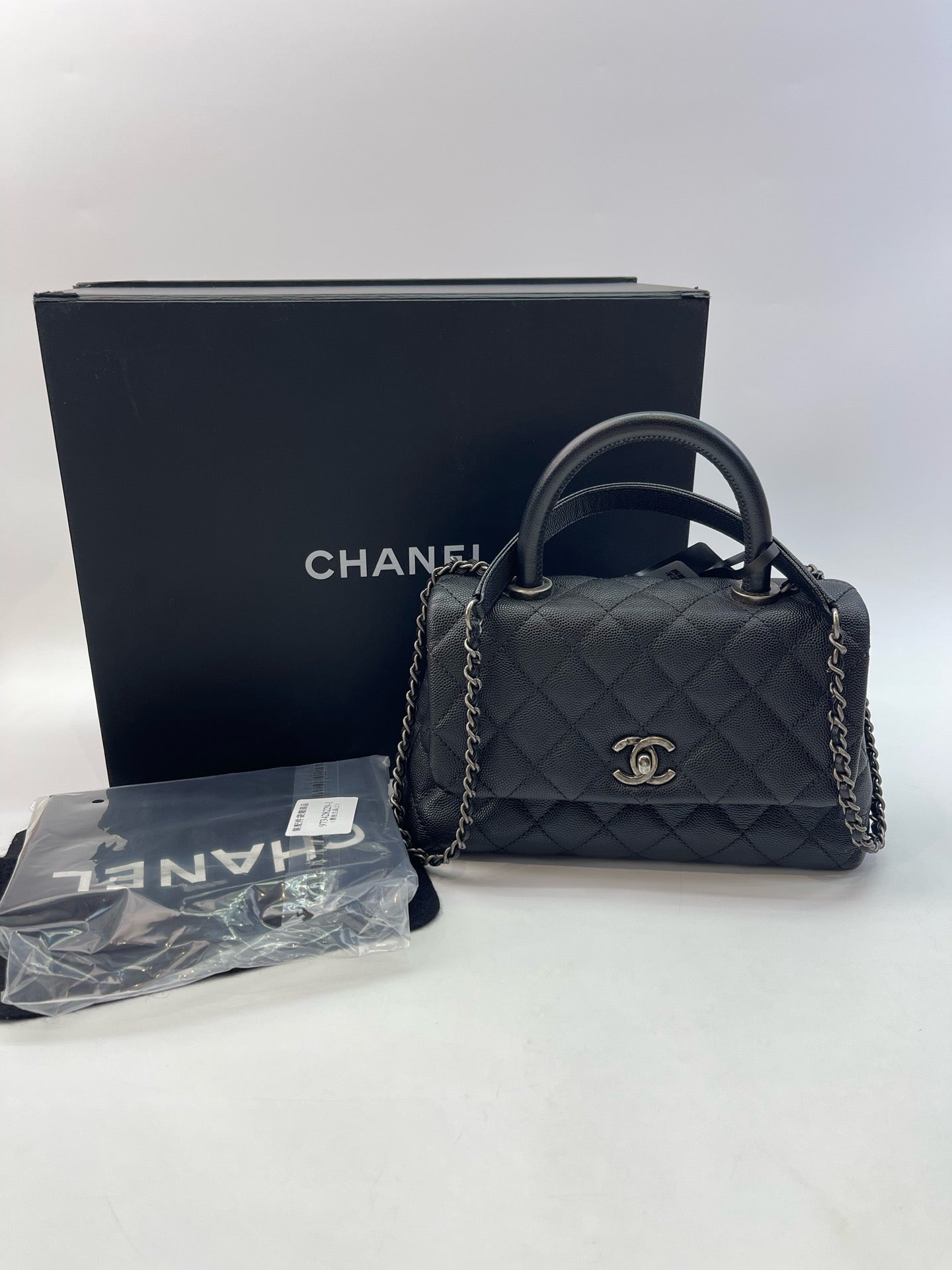 Chanel Coco Handle 24, made of pebbled leather with a lizard handle.
