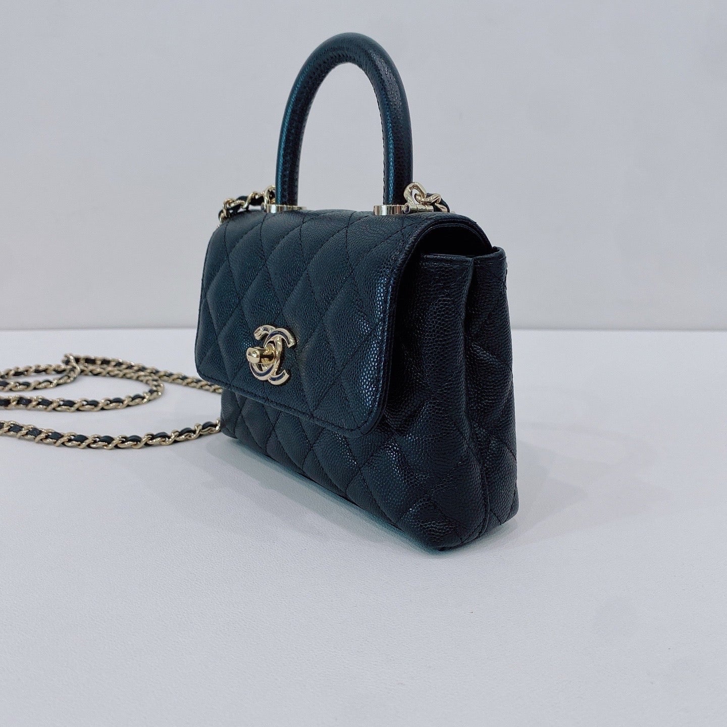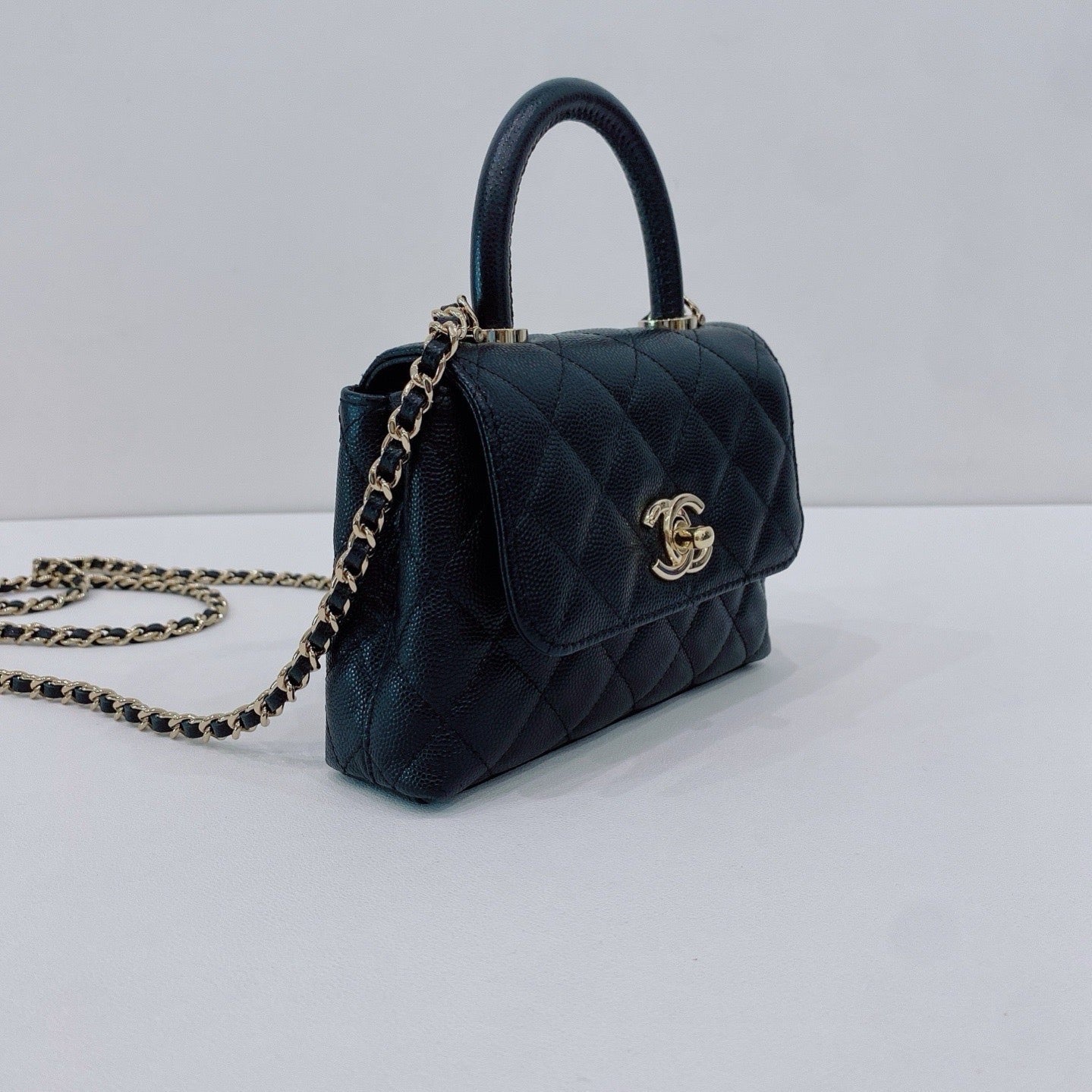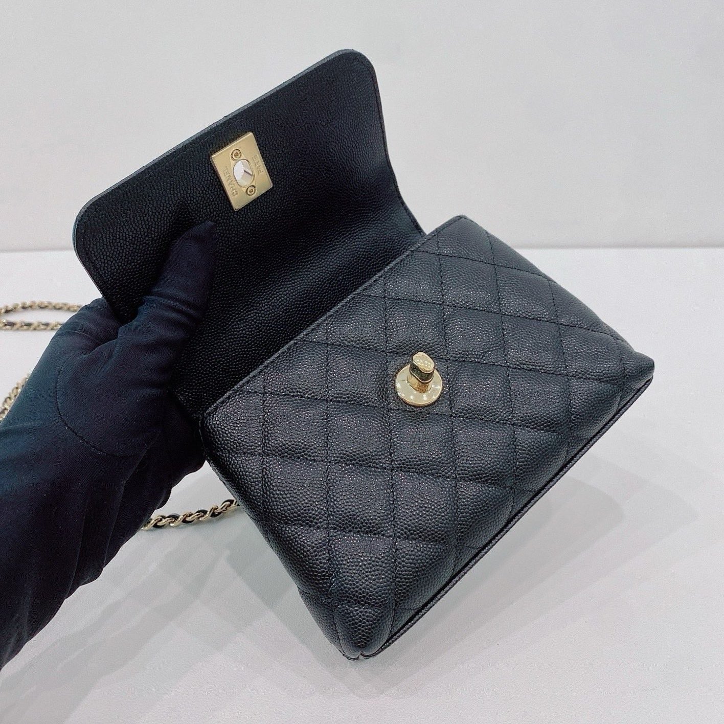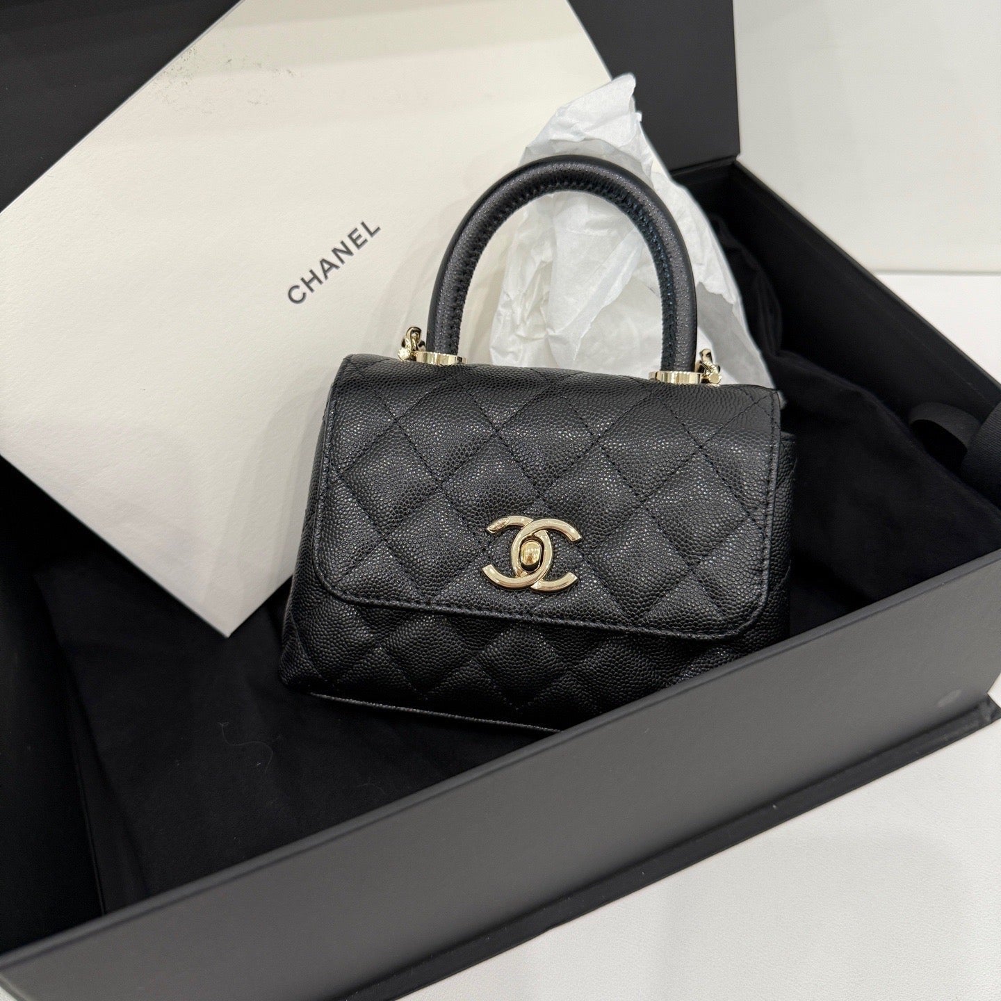CHANEL Coco Handle 24K Mini Black Gold Quilted Leather Jacket
