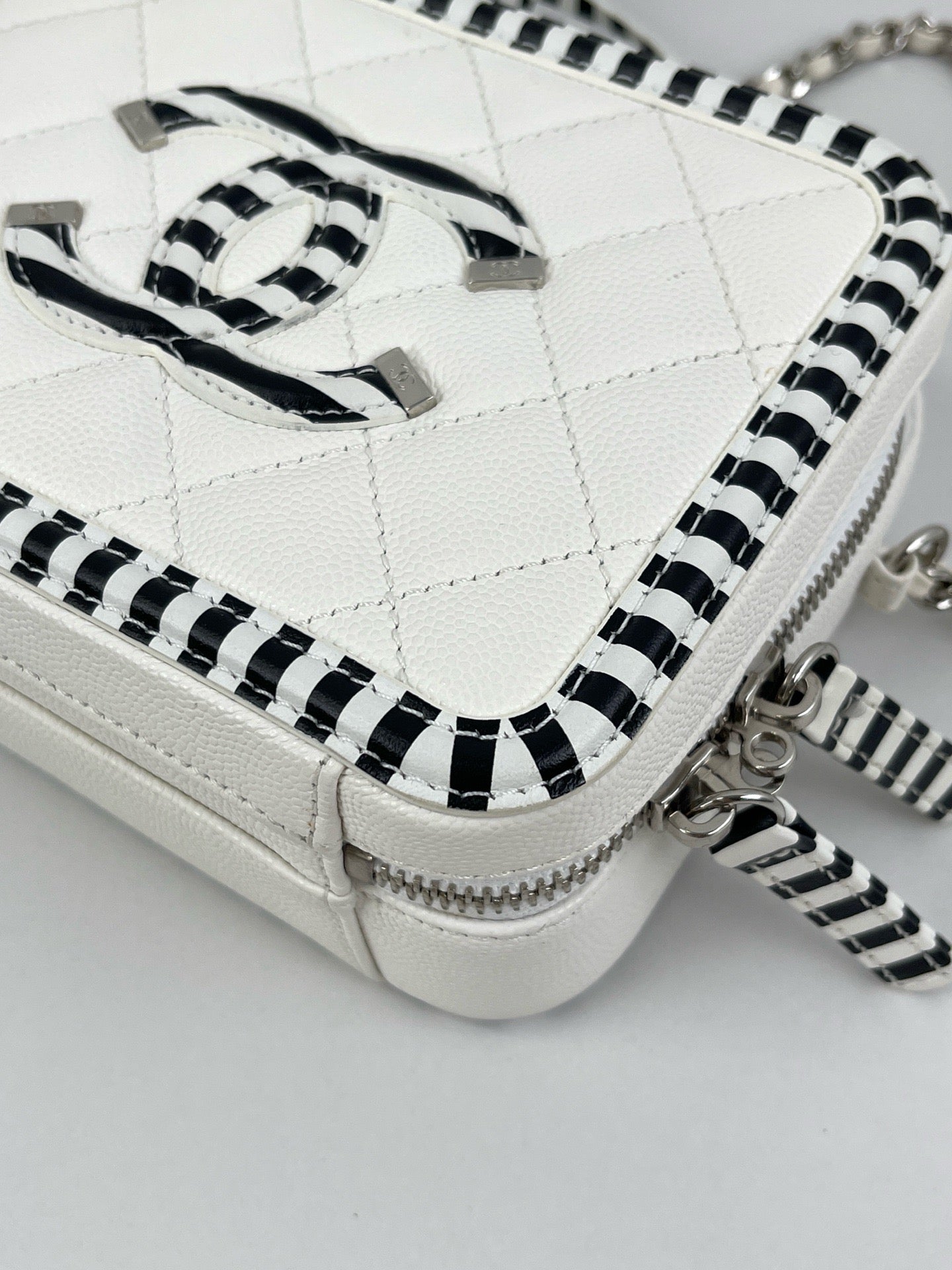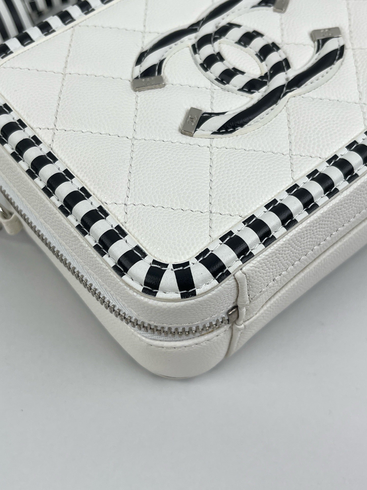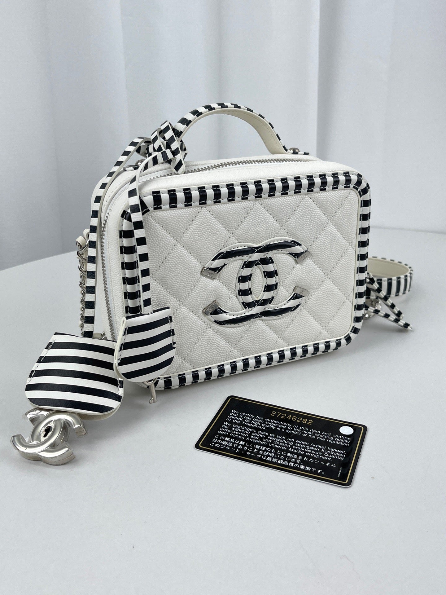 Chanel Filigree Vanity Case, Quilted Caviar Striped Leather, Medium