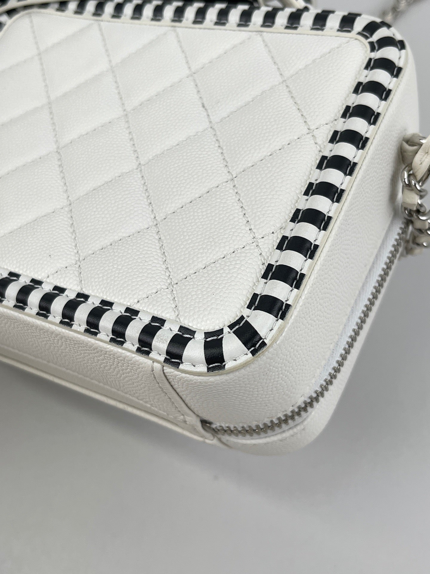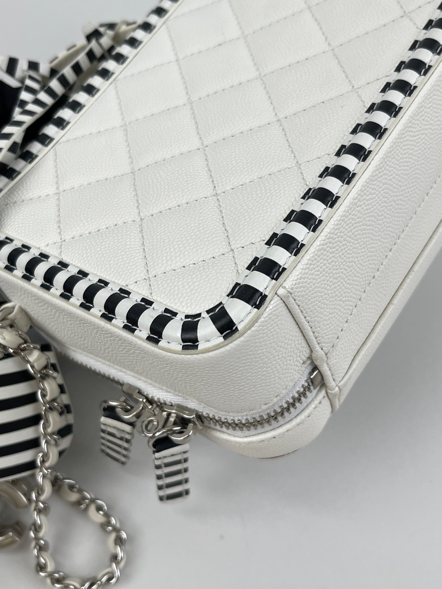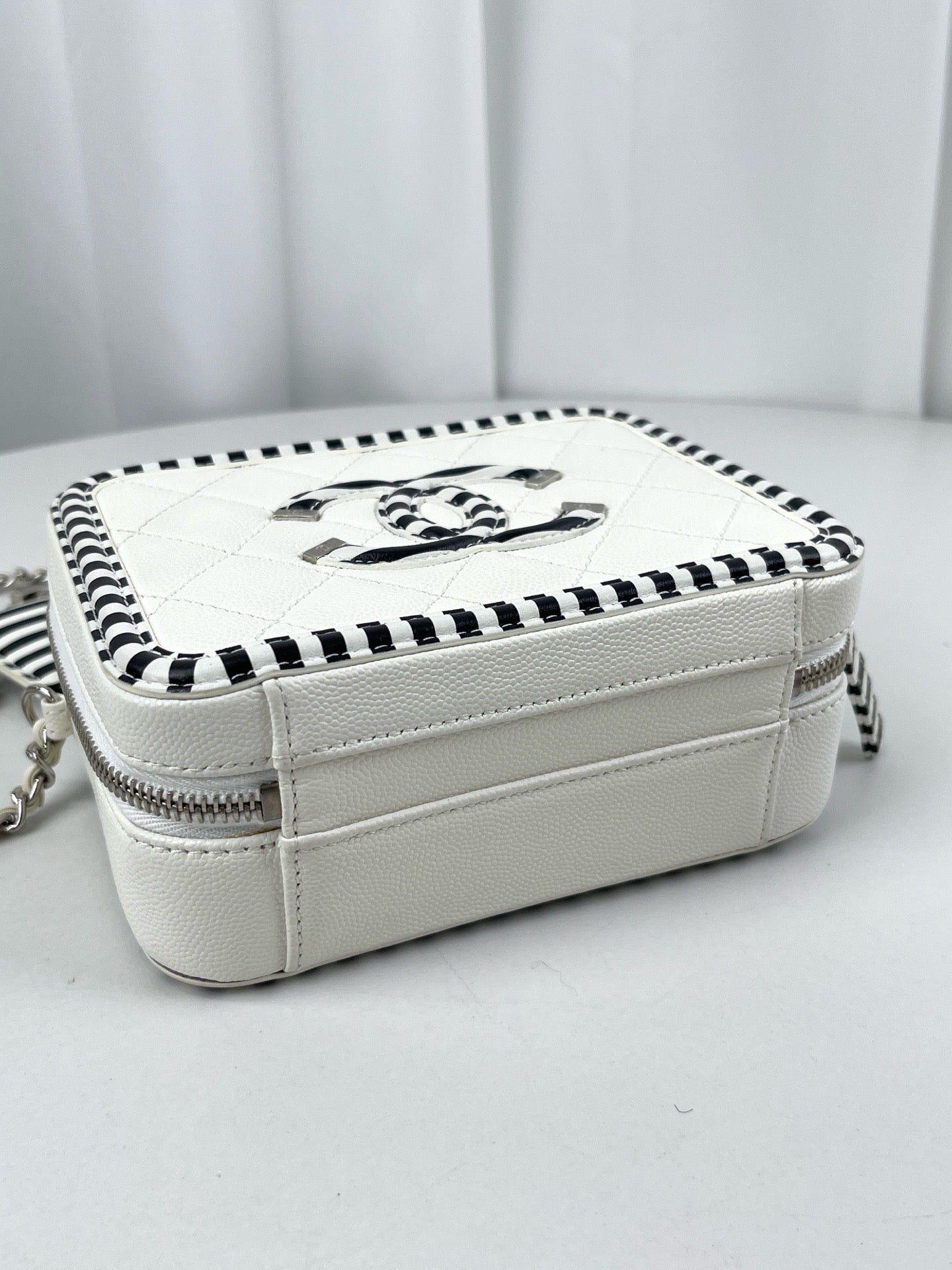 Chanel Filigree Vanity Case, Quilted Caviar Striped Leather, Medium