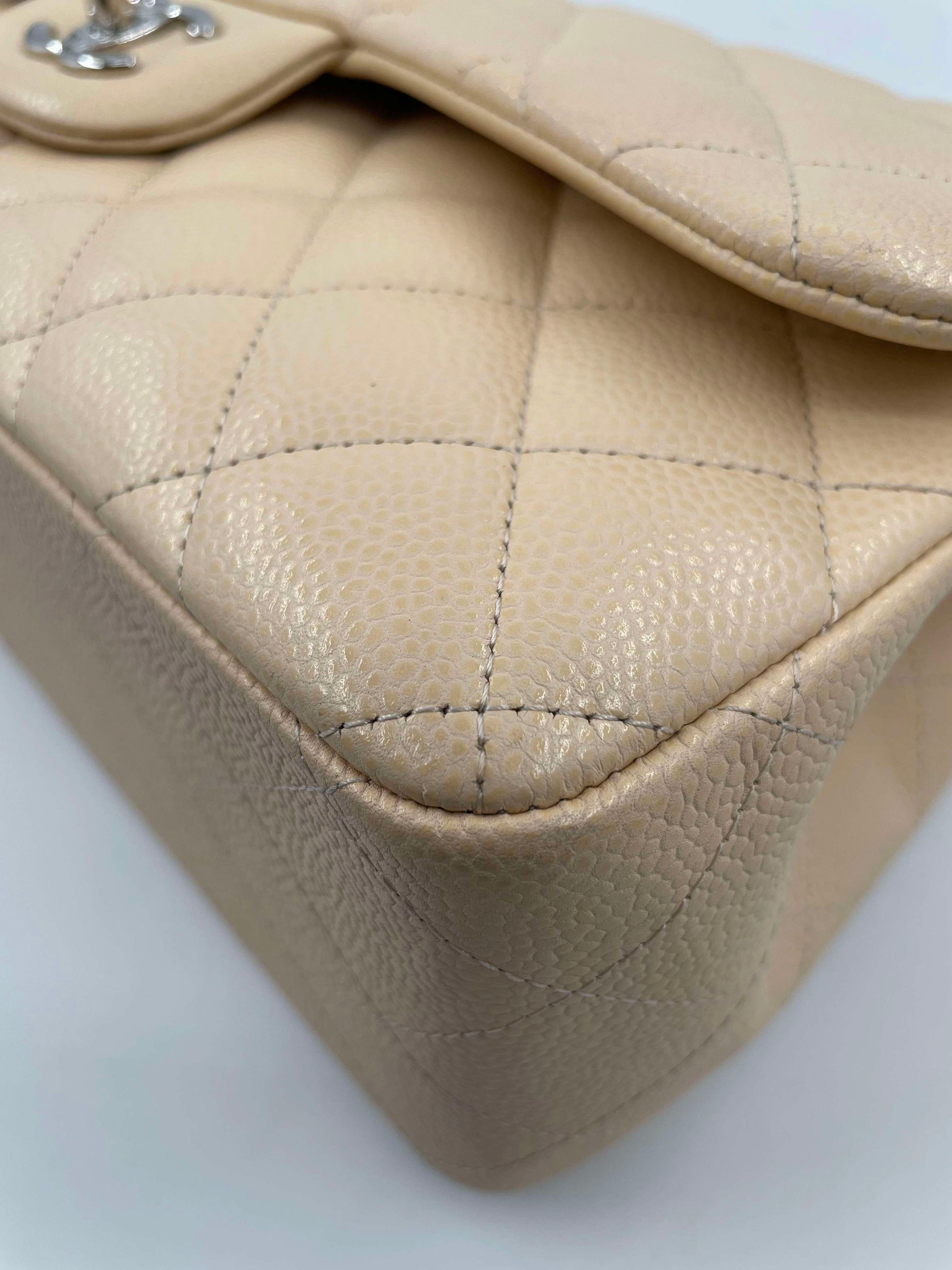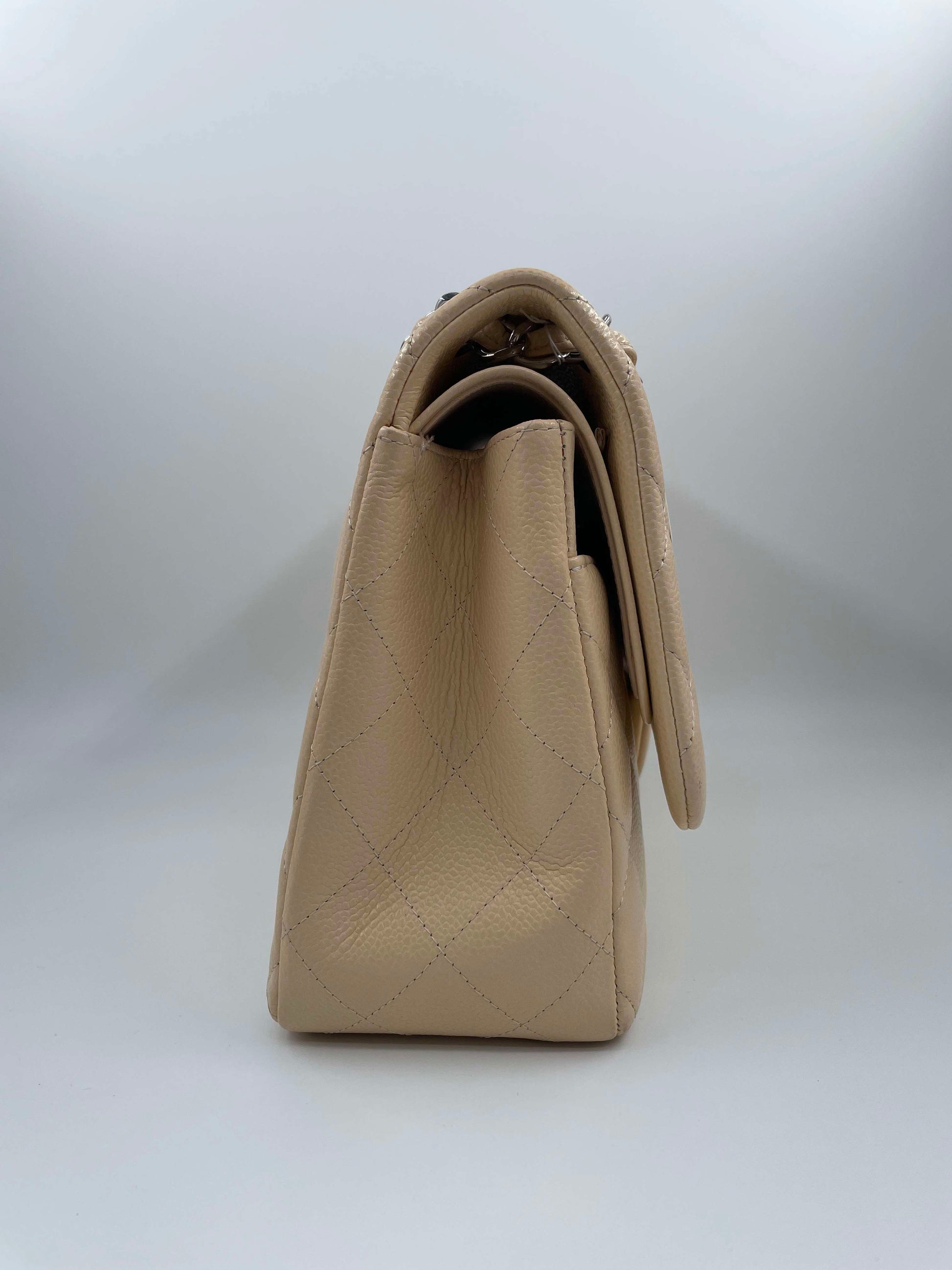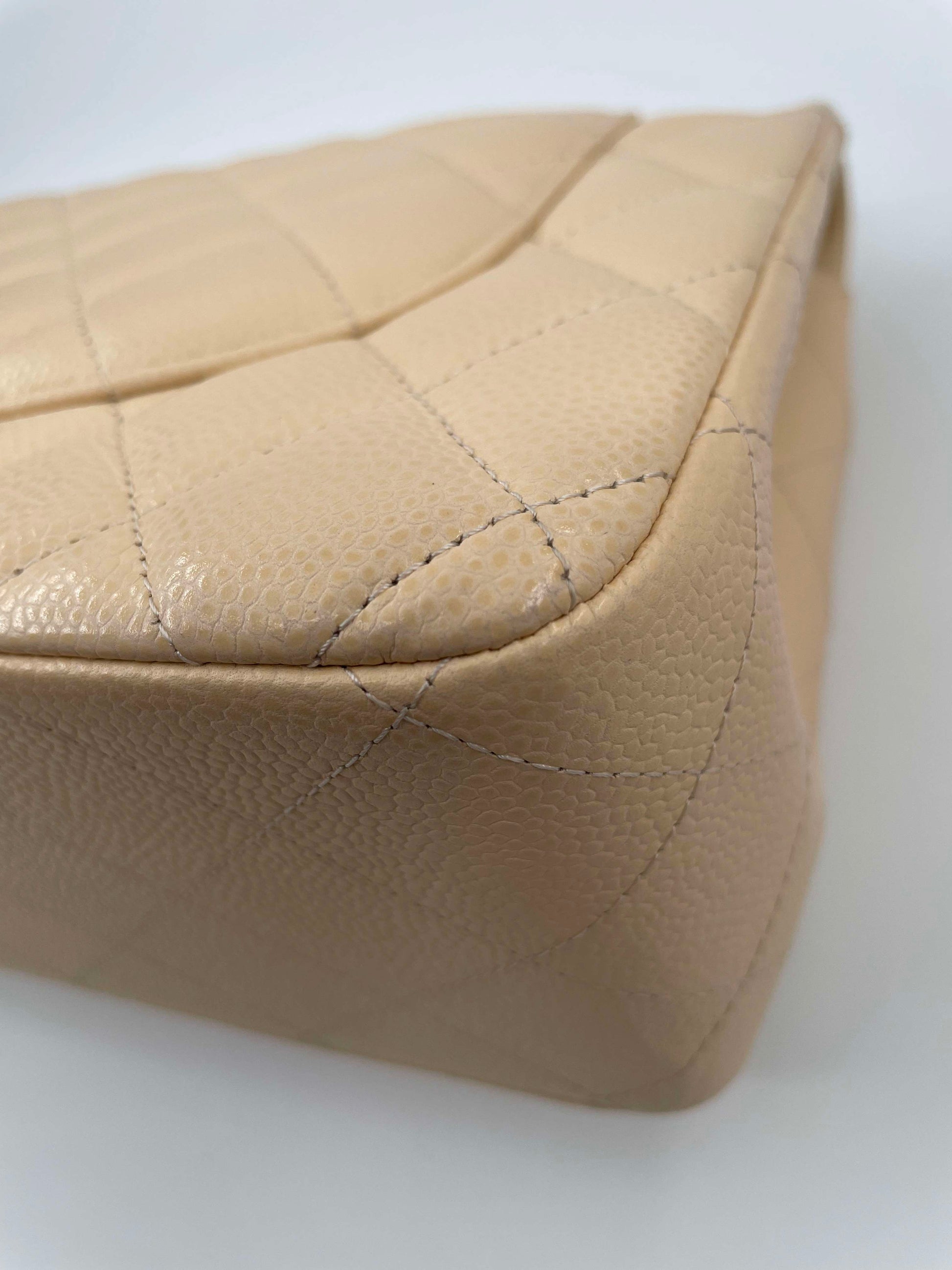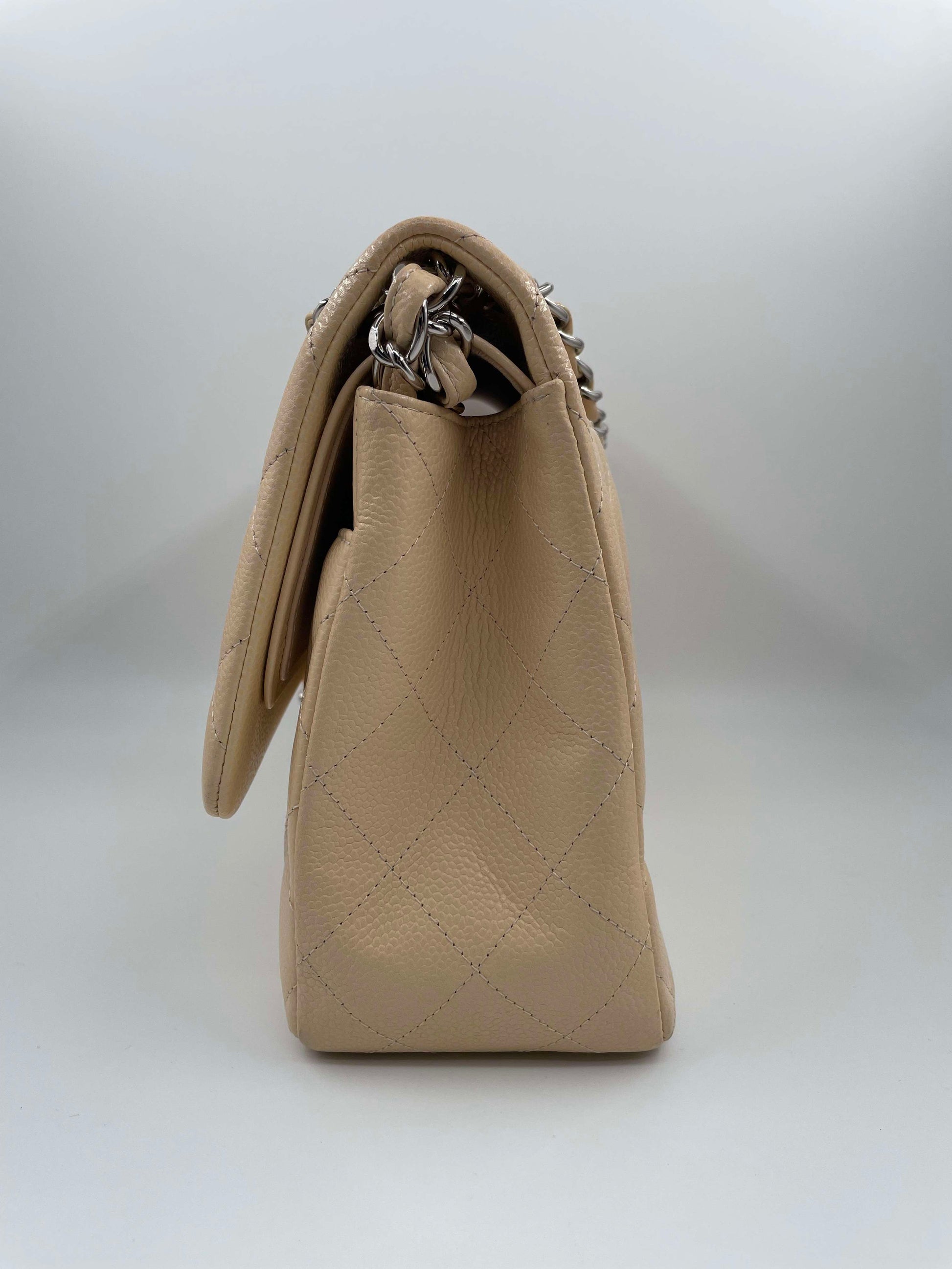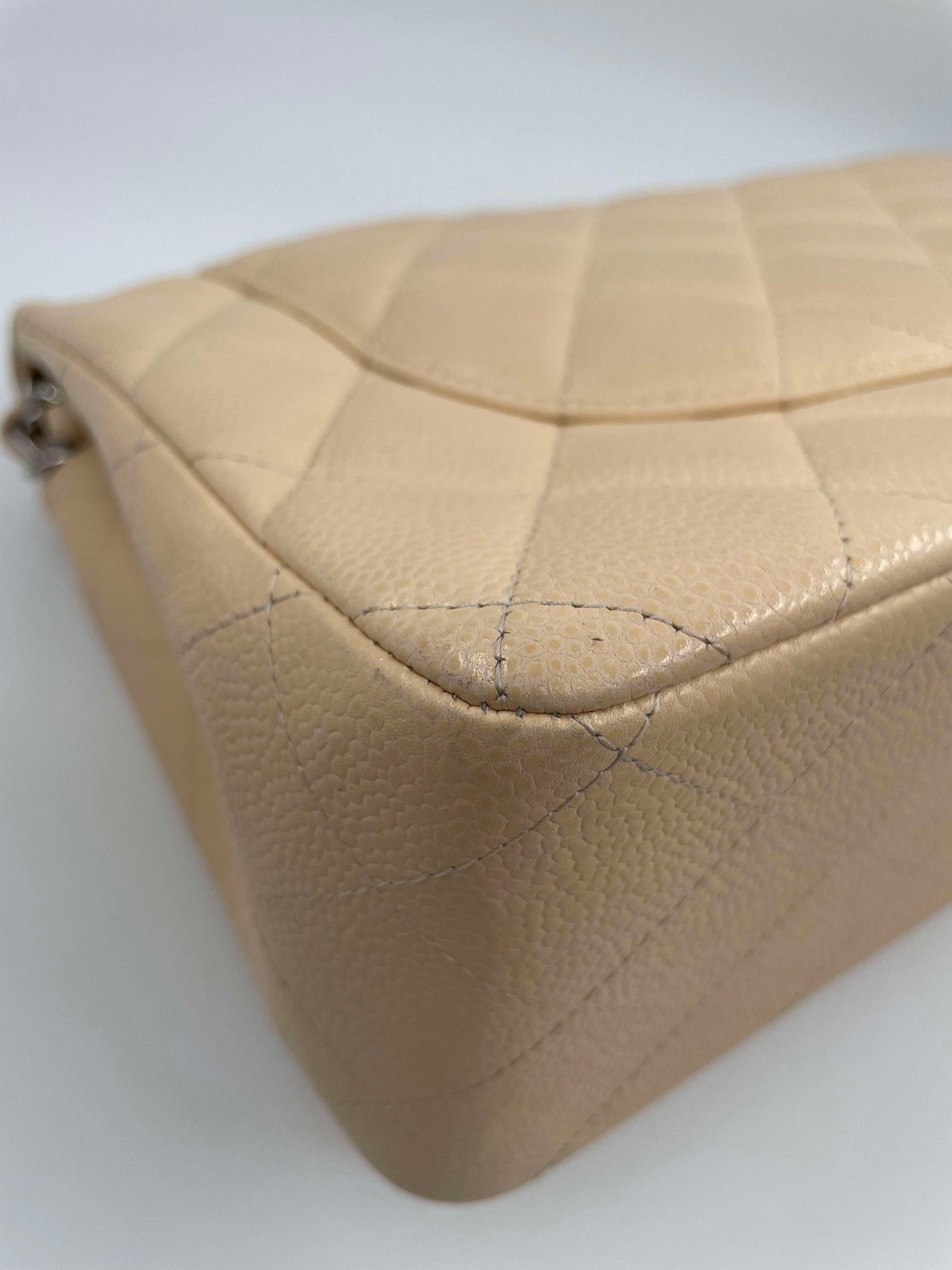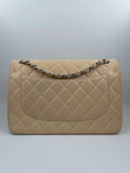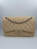 CHANEL Jumbo Beige Caviar Classic Double Flap Handbag Silver Hardware